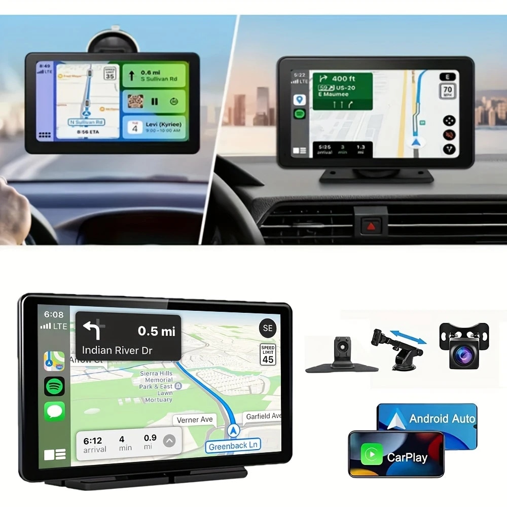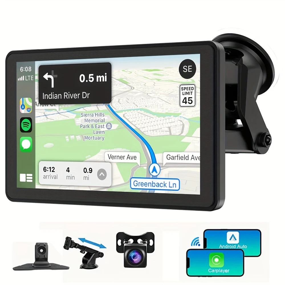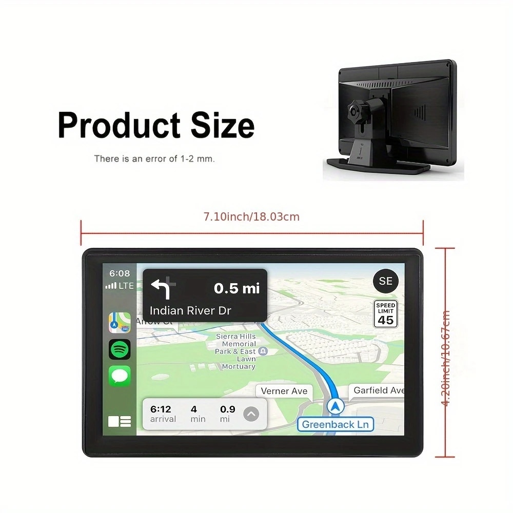 Ecran portabil pentru masina, WeGolden, 7 "HD Touchscreen Car Radio cu CarPlay & Android Auto, Wireless / TF-Card / AUX / MirrorLink, Mai usor socket alimentat, On-Dash Mount