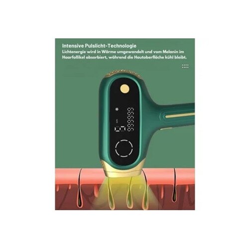Epilator IPL, 5 niveluri de intensitate, 999,999 de flash-uri, lumina rece, display LED, verde