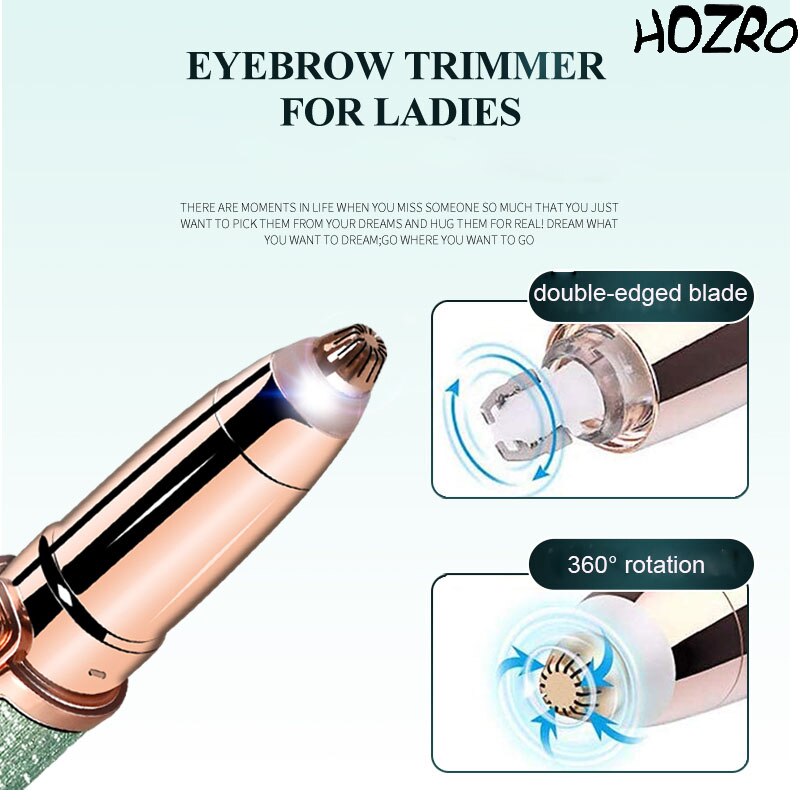 Epilator Sprancene 2 in 1 HOZRO, Aparat Portabil pentru Definirea Sprancenelor si Indepartarea Pufului Facial