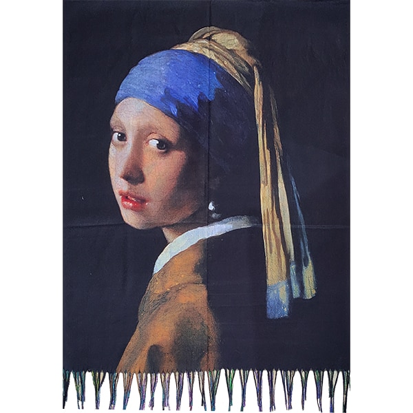 Esarfa tip sal din lana, Pictura Johannes Vermeer, Fata cu cercel de perla, Multicolor, 180x74cm