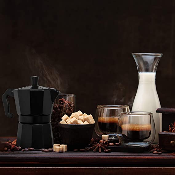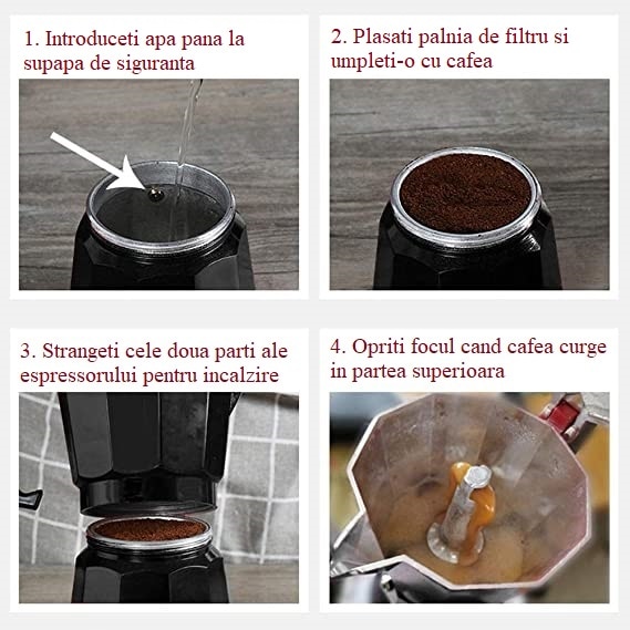 Espressor Cafea pentru Aragaz sau Plita Electrica, Cafetiera, Aluminiu, Mocca pentru 6 persoane, 300 ml, Negru