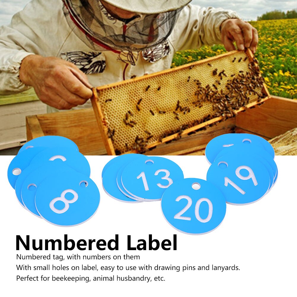 Etichete numerotate pentru apicultura si cresterea animalelor, KkvoGmle, set 1-20, rosu si albastru, 3.6cm