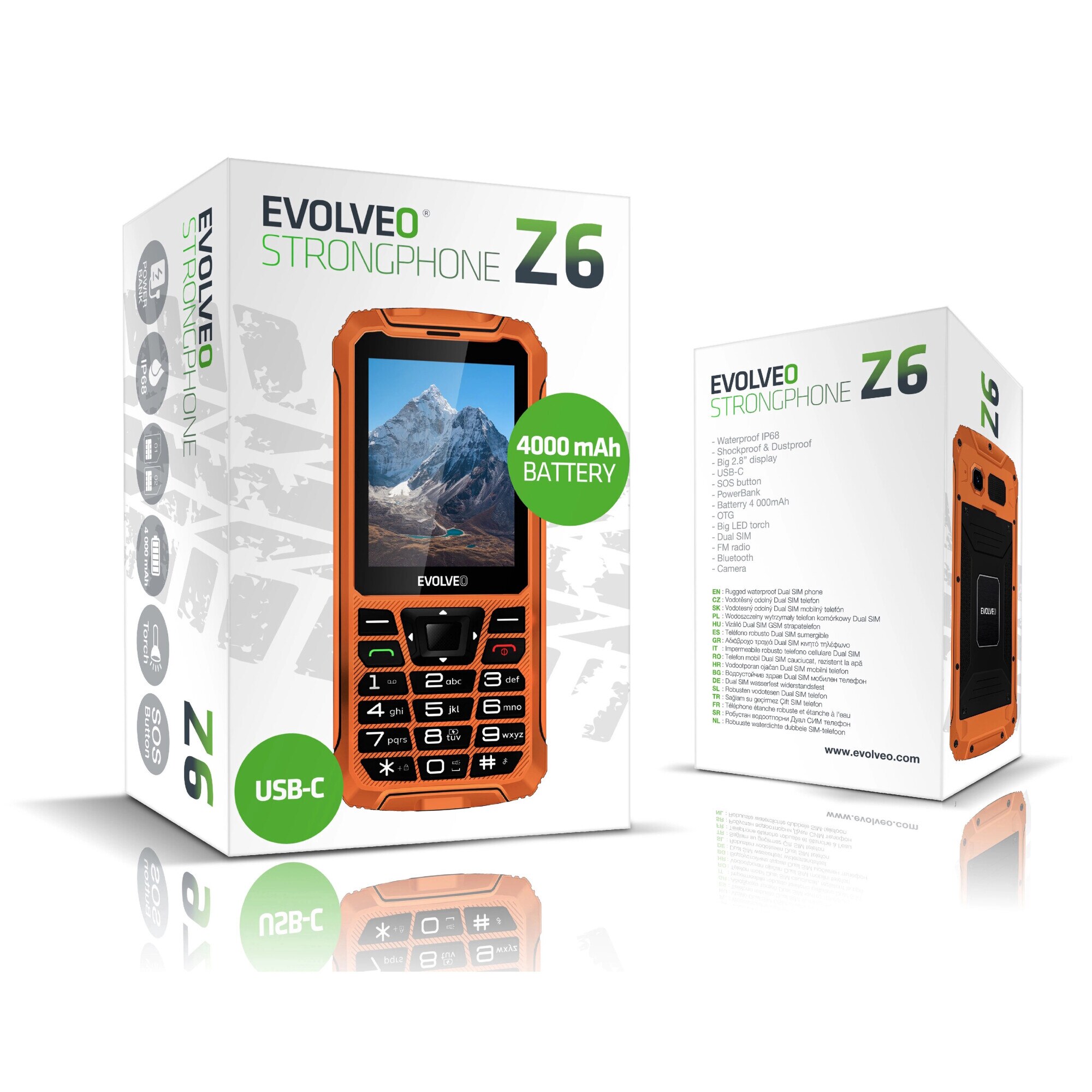 StrongPhone Z6 este un telefon cu o rezistenta cu adevarat extrema. Si nu numai datorita corpului sau durabil cu grad de impermeabilitate IP68, care poate rezista la picaturi, apa, noroi sau zapada, ci mai ales datorita bateriei sale mari de 4 000 mAh. Toate acestea sunt completate de un afisaj mare de 2,8", functia de power bank, butonul SOS si multe alte avantaje pe care le ofera acest model.