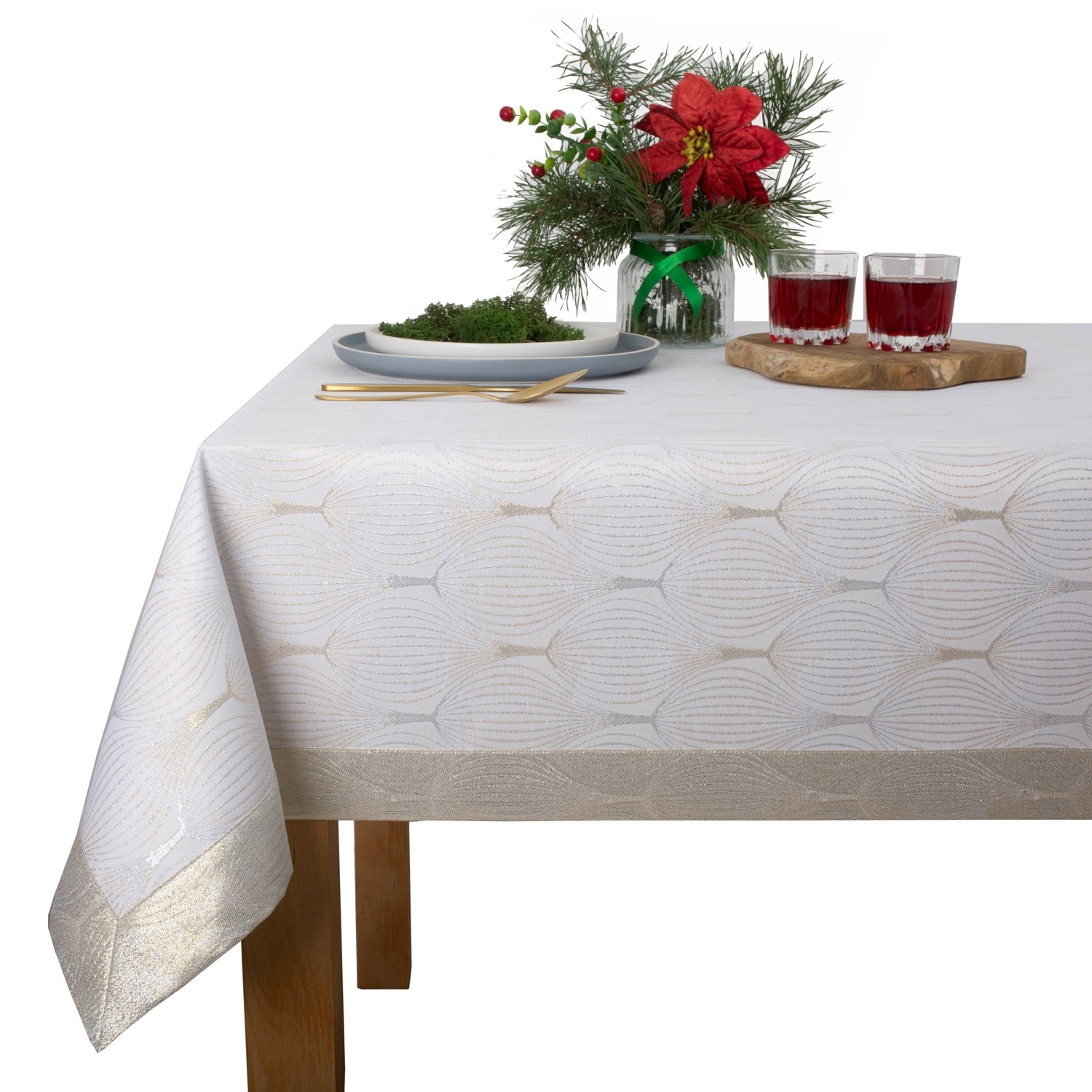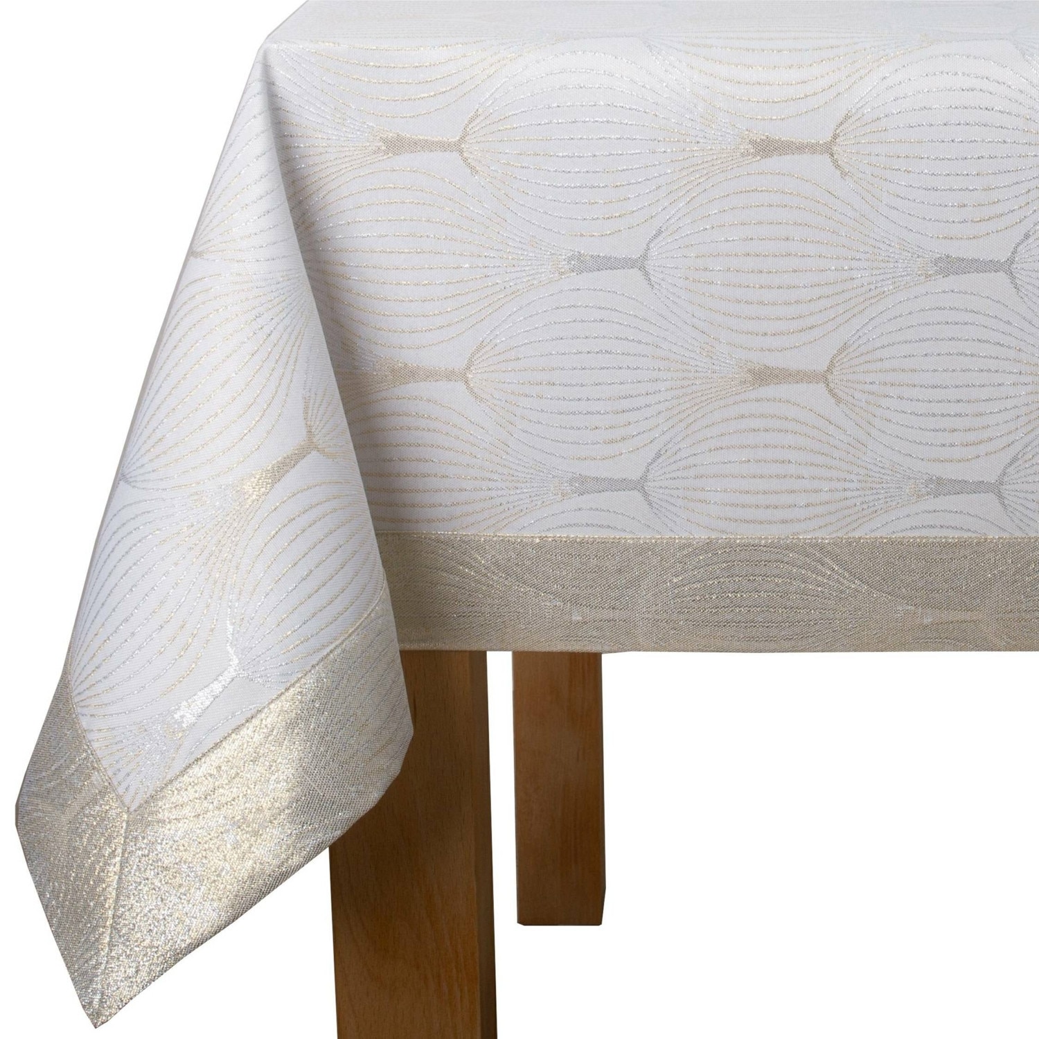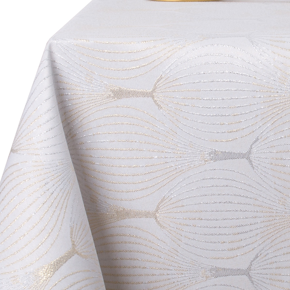 Fata de masa moderna rezistenta la pete, crem-argintiu-auriu, cusuta cu manseta de 5 cm: