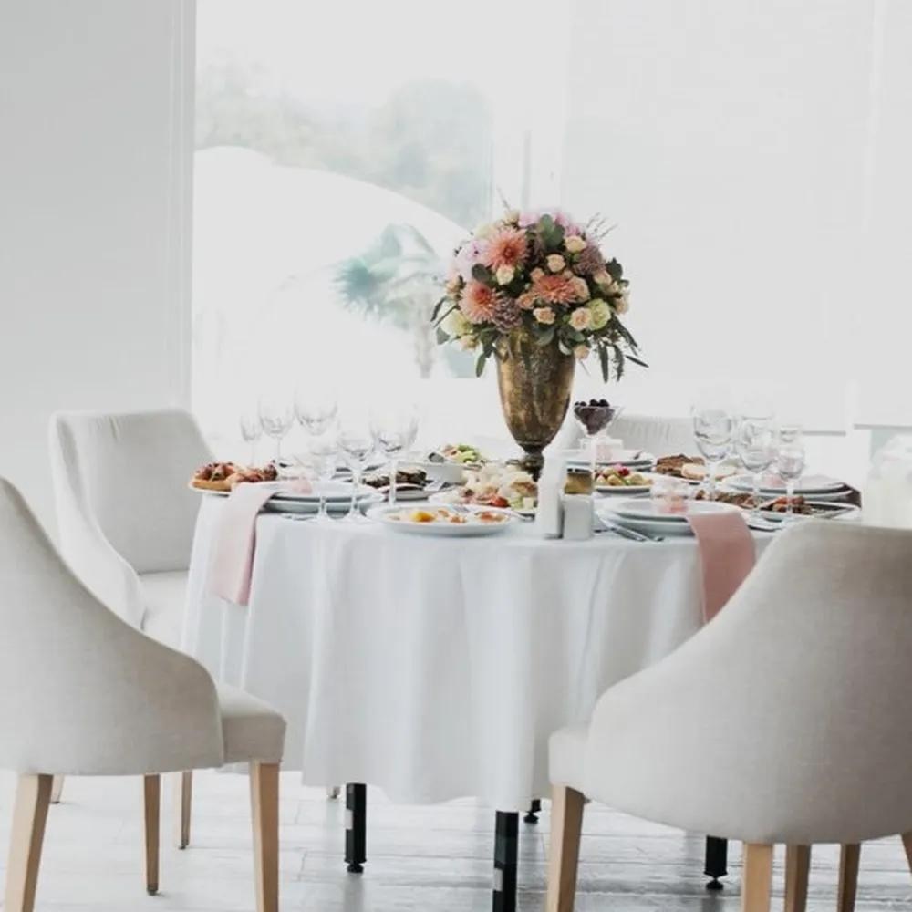 Fata de masa Kotonia Home - rotunda cu diametrul 240 cm, Damasc Saten DeLux, 100% bumbac, alb