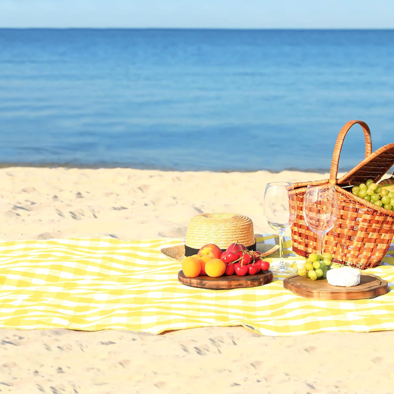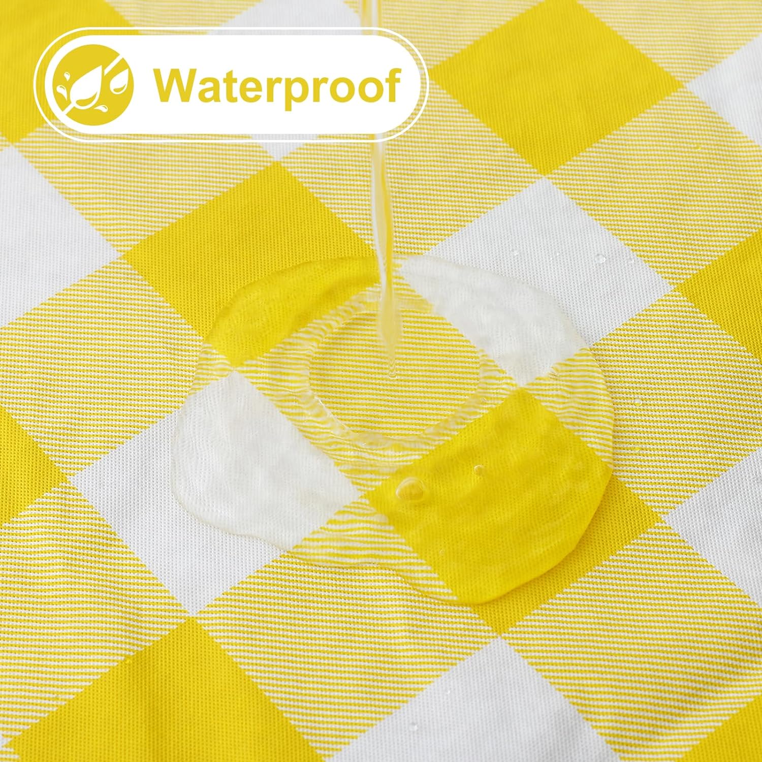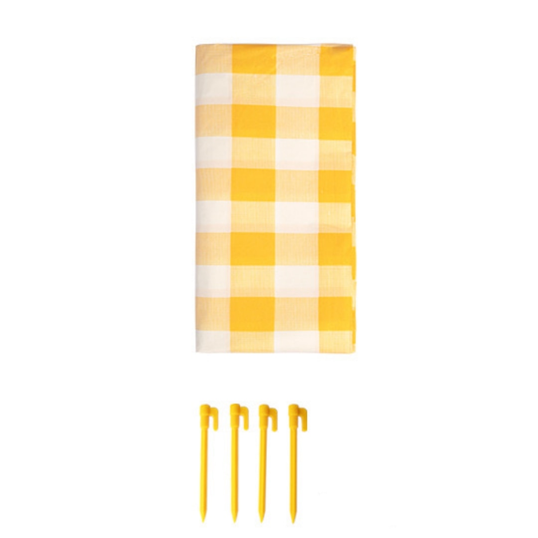 Fata de masa, Multifunctional, Covoras de picnic de unica folosinta cu 4 tepi de pamant, PVC, rezistent la apa si ulei, 180x180 cm, carouri galben