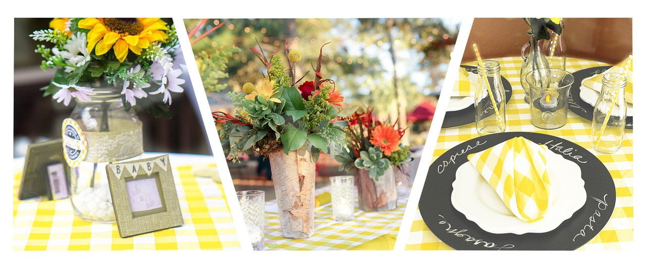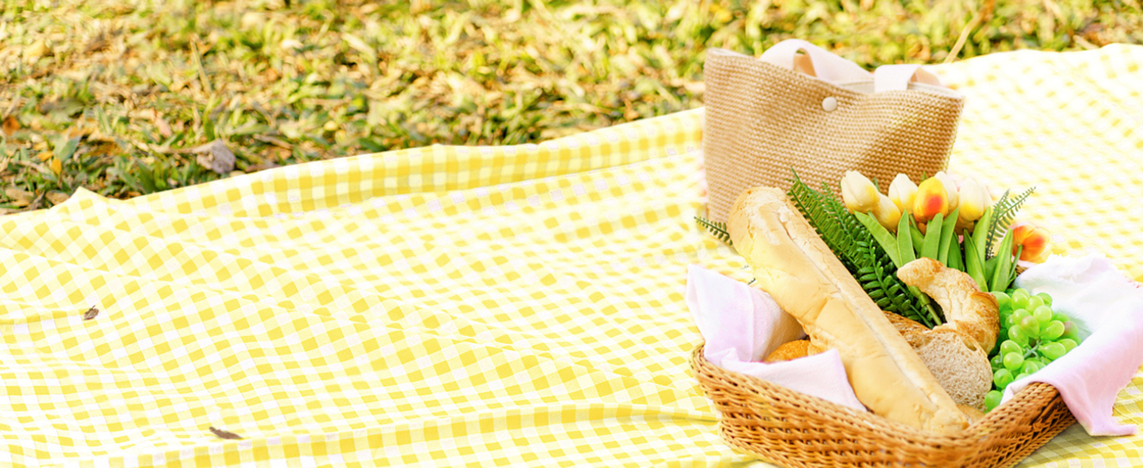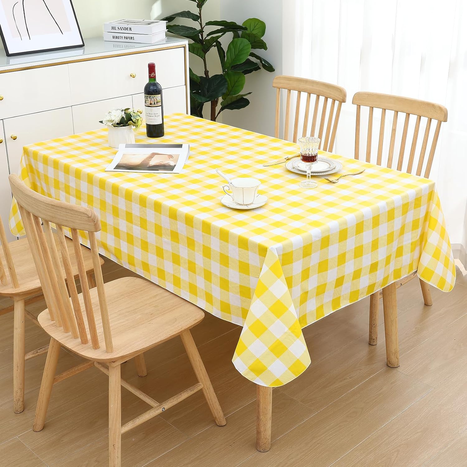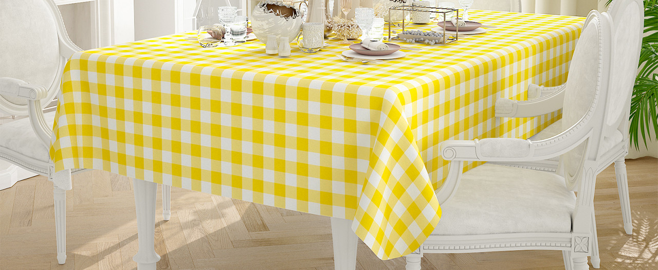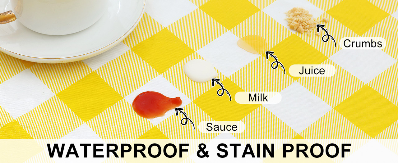 Fata de masa, Multifunctional, Covoras de picnic de unica folosinta cu 4 tepi de pamant, PVC, rezistent la apa si ulei, 180x180 cm, carouri galben
