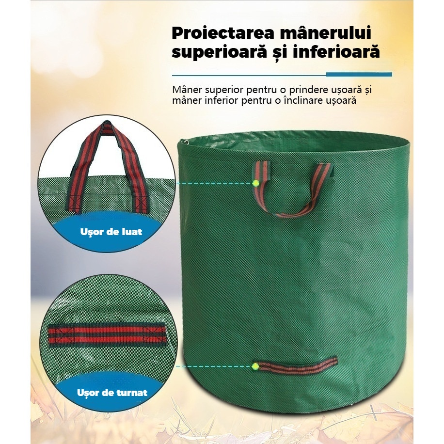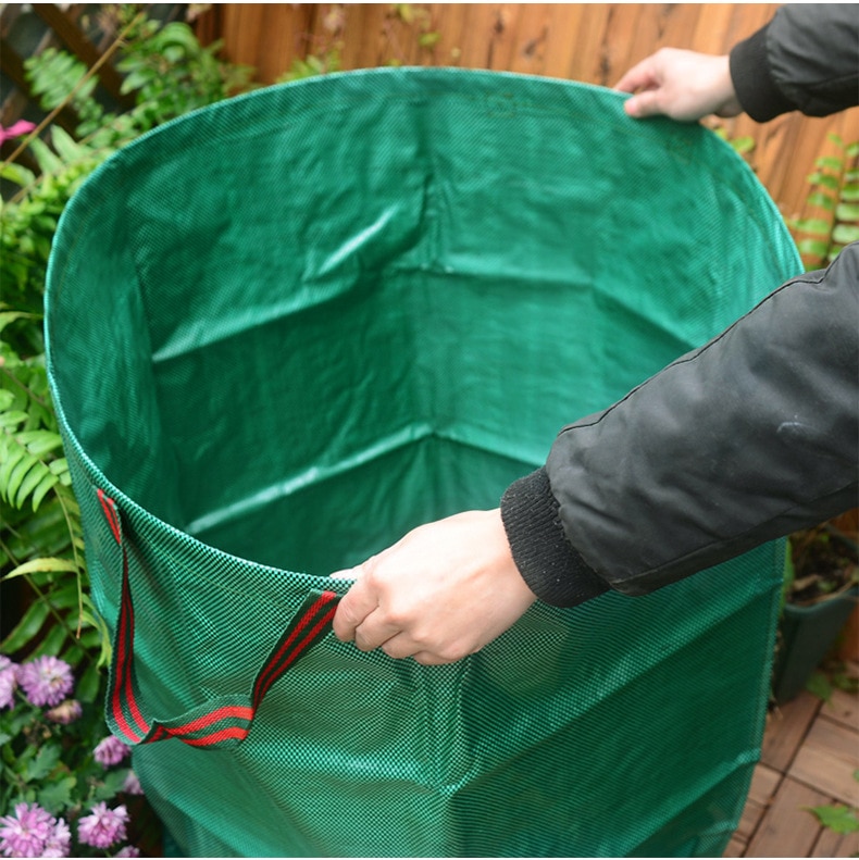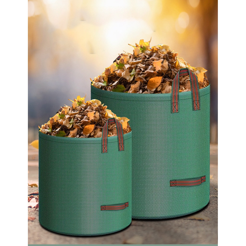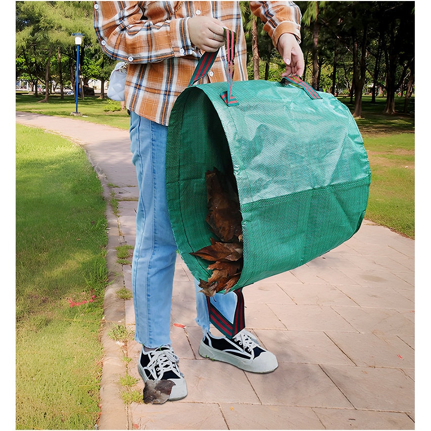 Feicaeesa® Sac Gradina 500L Textil Model Sah, Manere Rezistente Rosii-Negre, pentru Frunze/Buruieni/Gunoi - 86x86cm, Verde Rezistent