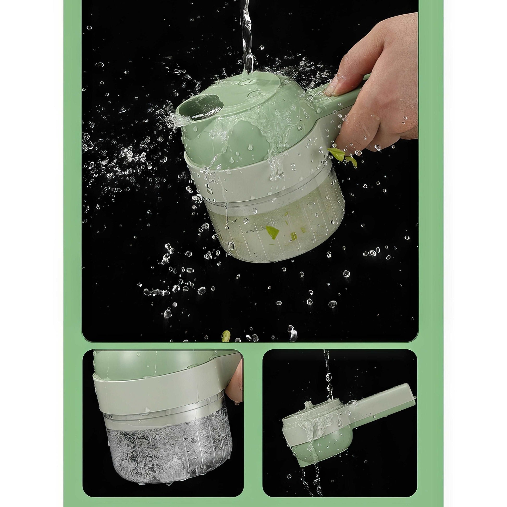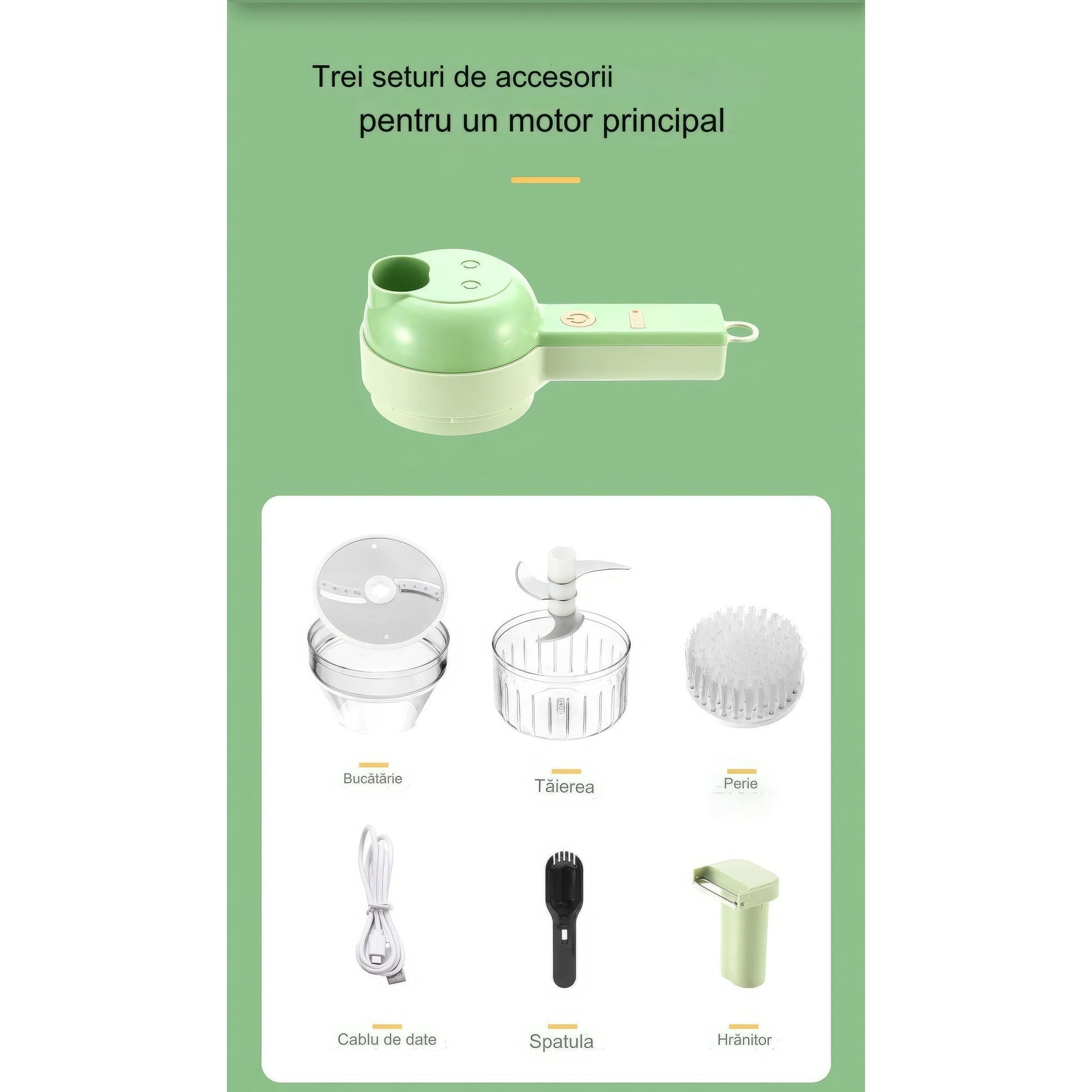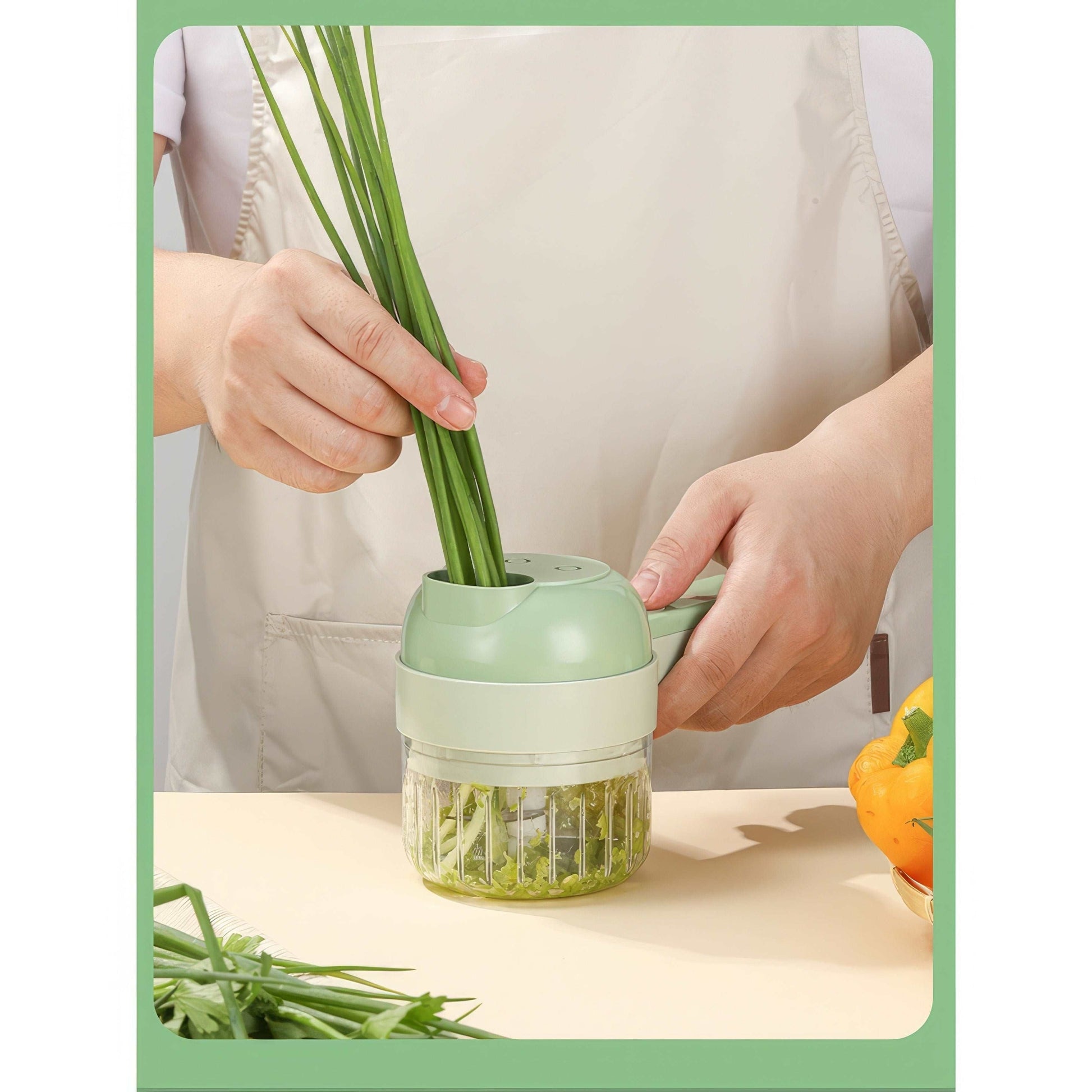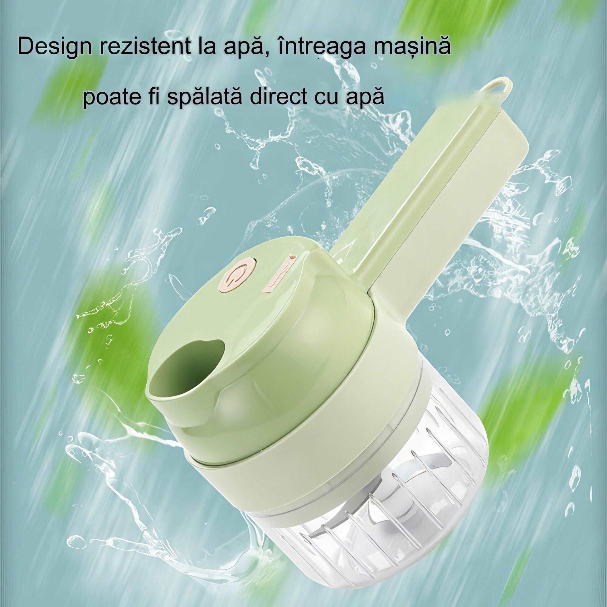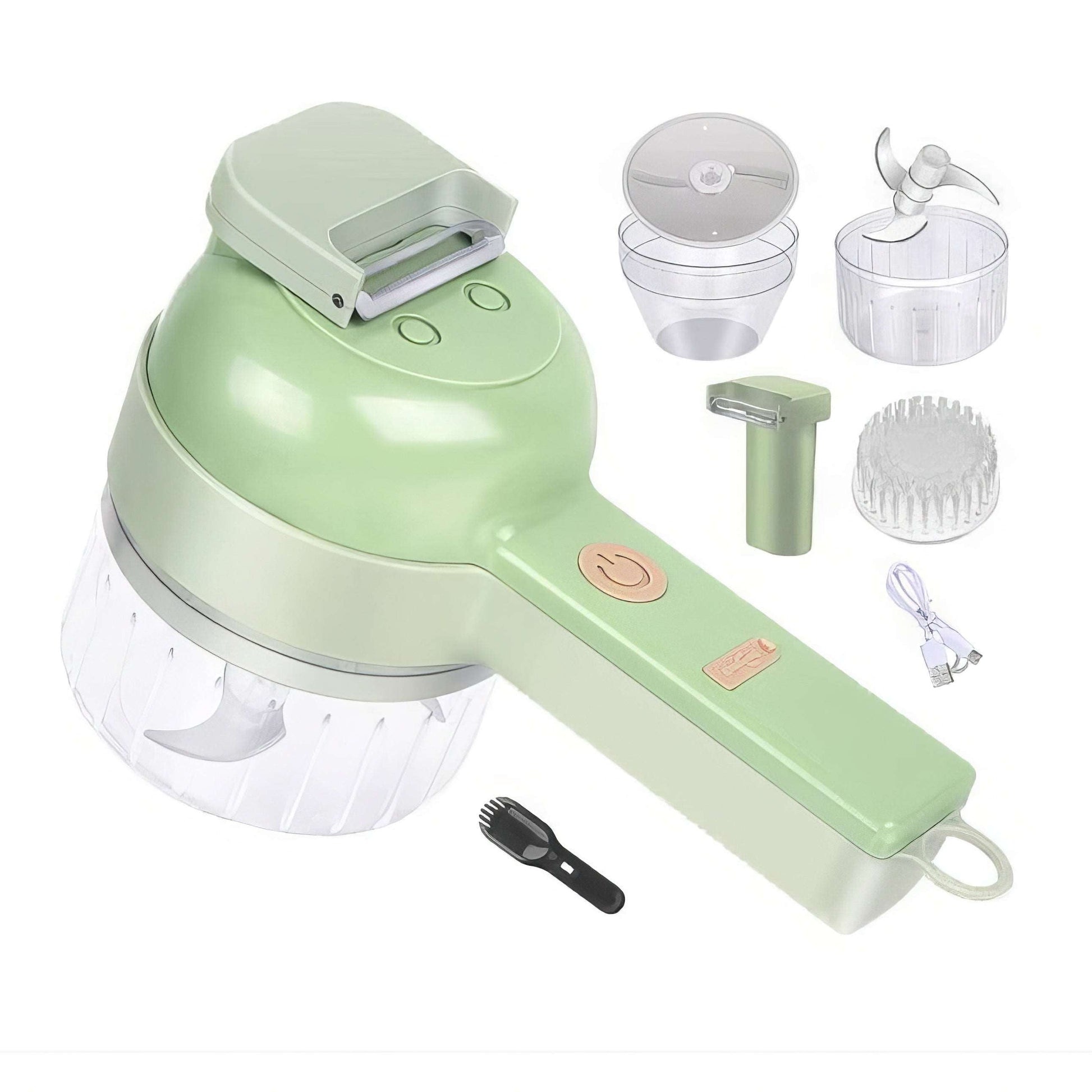 Feliator Electric manual, Blender, 4 in 1, Legume, Fructe, Usturoi, Cu Functii de Feliere, Tocare, Perie de Curatare, Incarcare USB, Verde