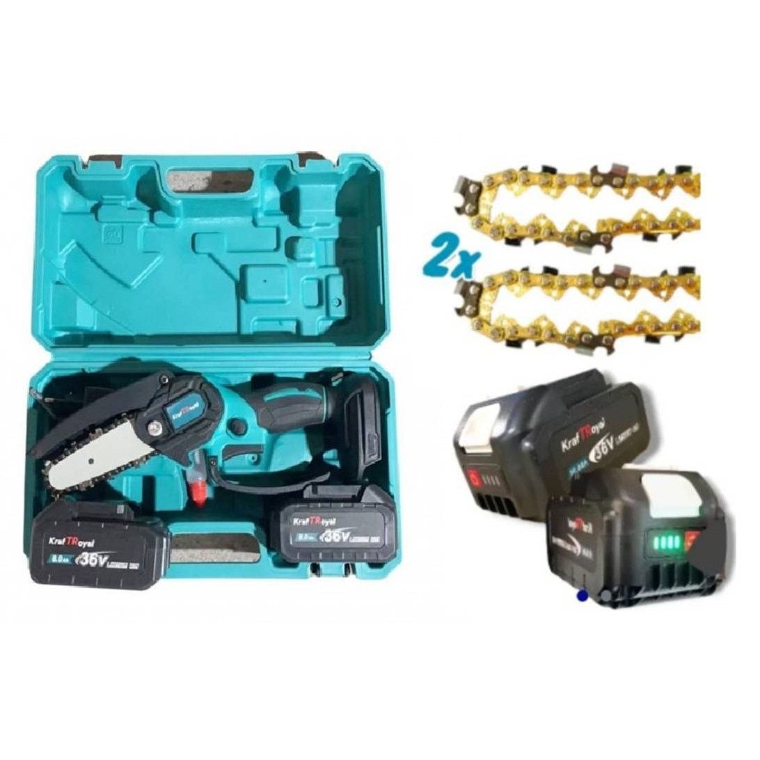 Ferastrau cu lant Kraft Royal, taietor, afisaj, fara fir, verde, 36VDC, 8Ah, 200mm, kit