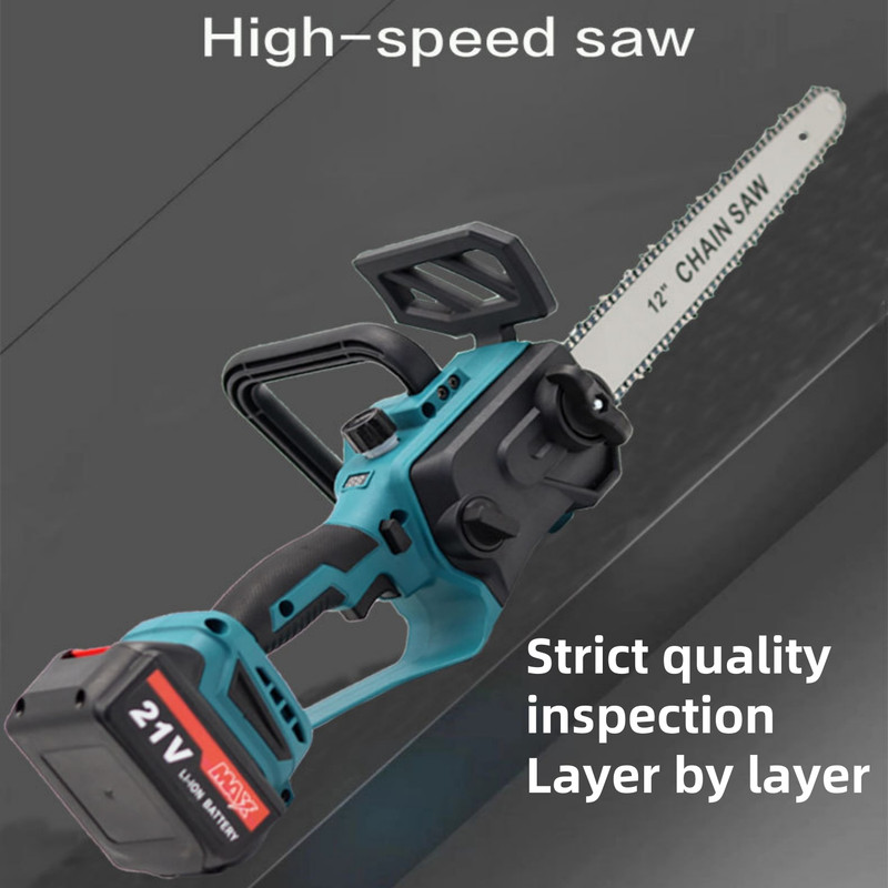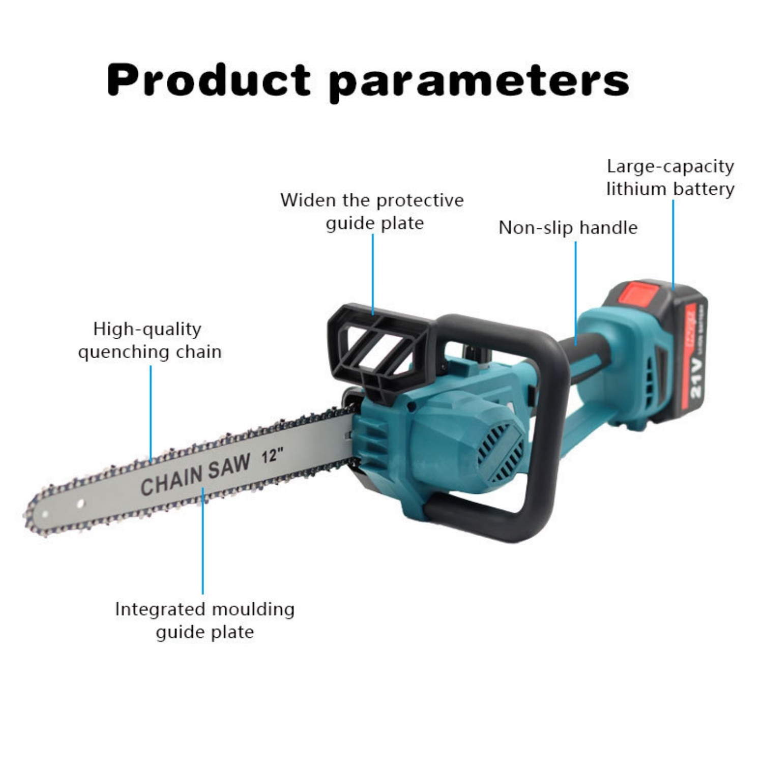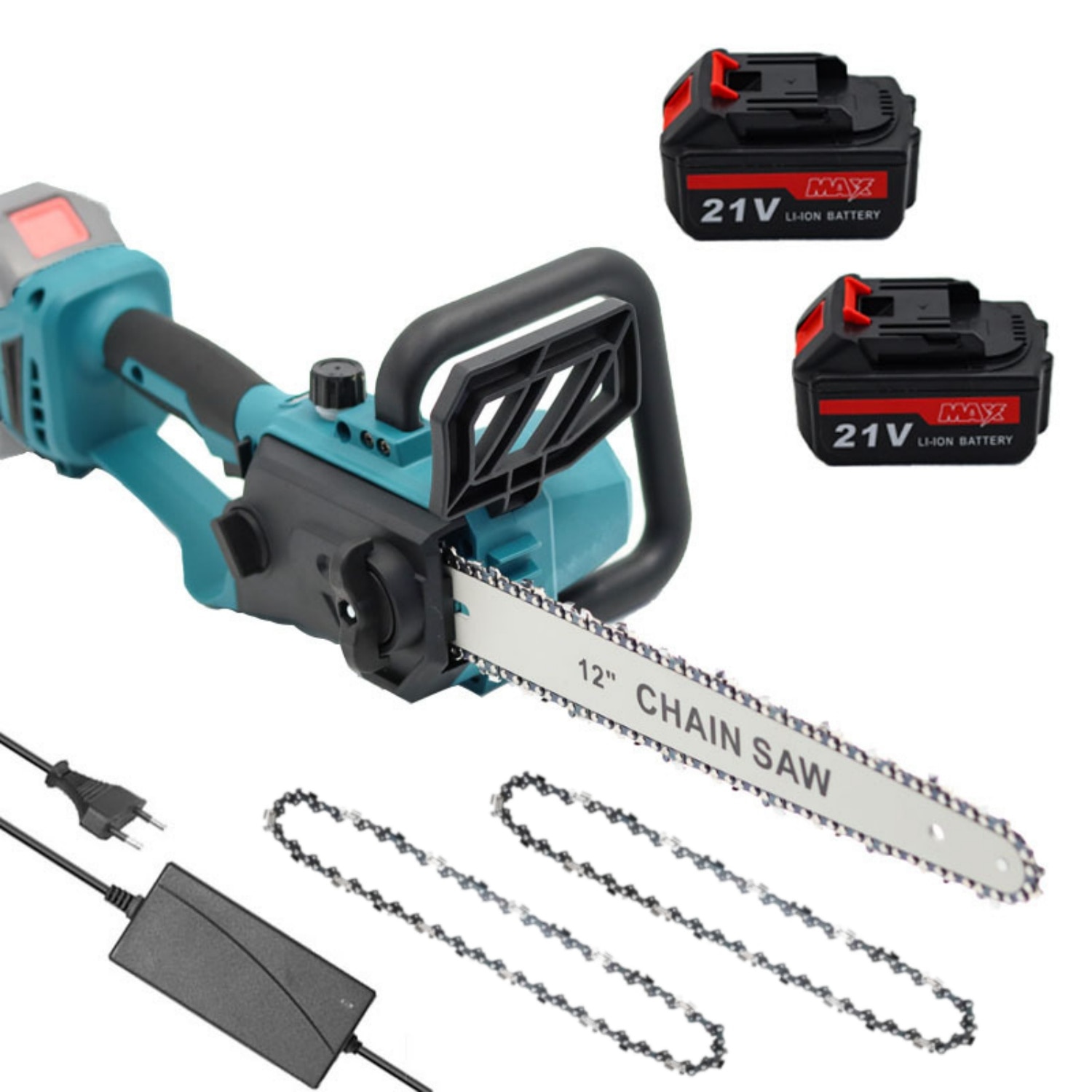 Ferastrau cu lant, MOSMAOO®, 2 acumulator 21V, 1500 mAh, Max 1800W, 12 inch(38cm), 2 Lanturi, 4500RPM, Albastru-verde