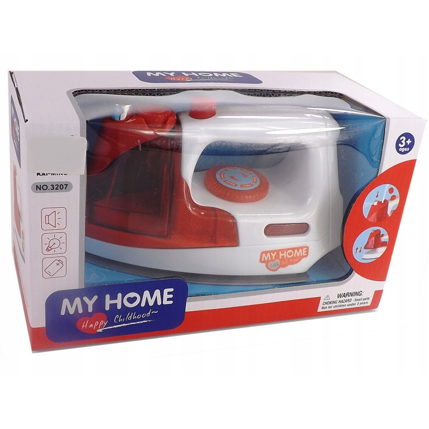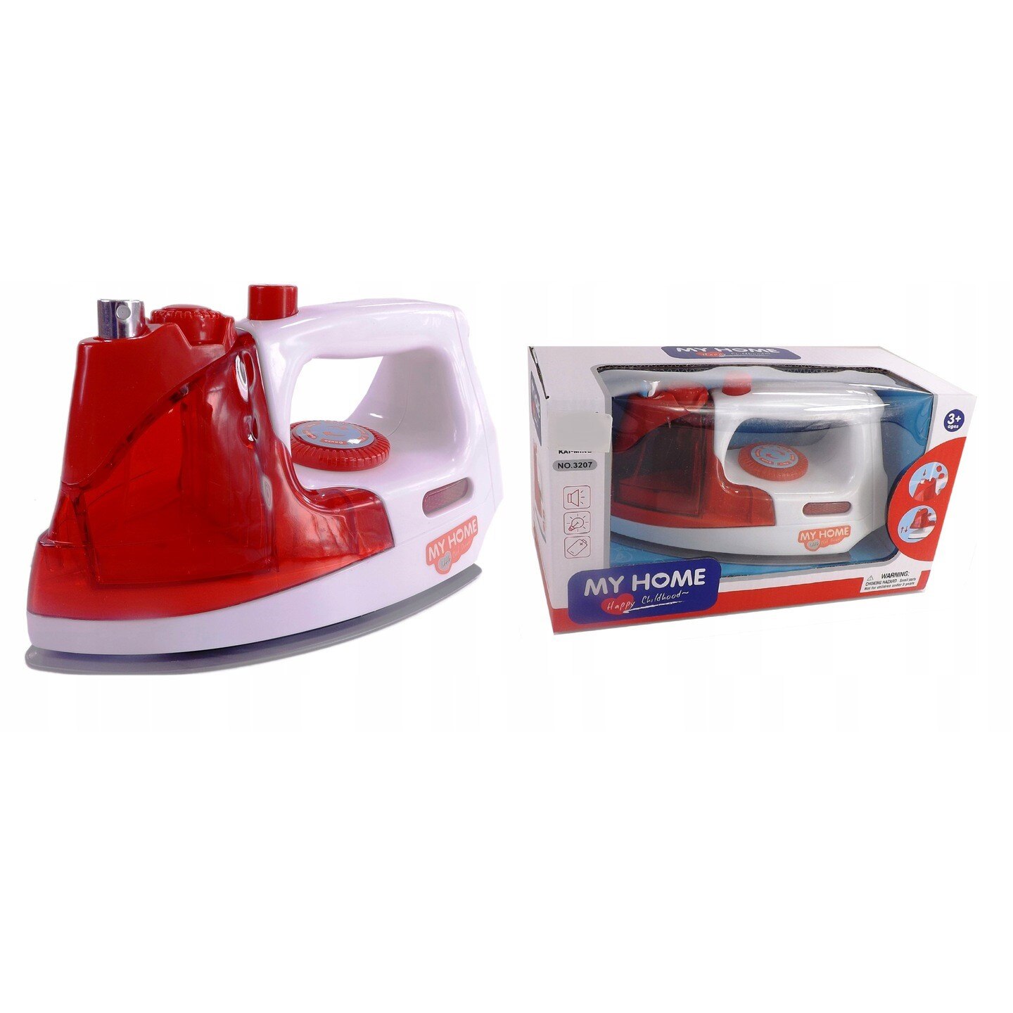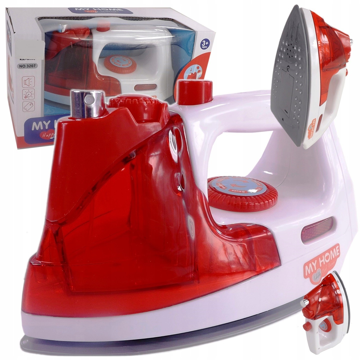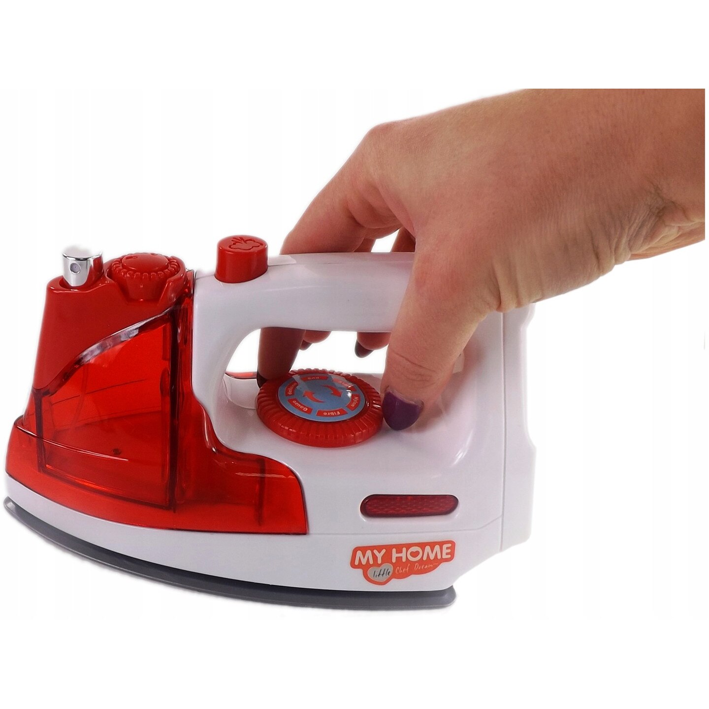 Fier de Calcat de Jucarie pentru Copii, cu Sunete Realiste si Lumina LED, Include Recipient pentru Apa, Pulverizeaza Apa, Lungime 20cm, Indiggo, 3ani+, Rosu