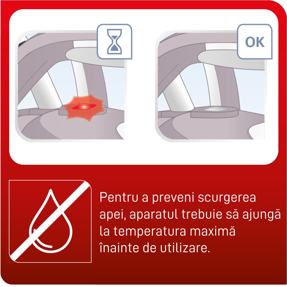 Pentru a evita scurgerea apei, recomandăm utilizarea aburului doar în zona în care este marcat simbolul de abur pe butonul rotativ al termostatului.