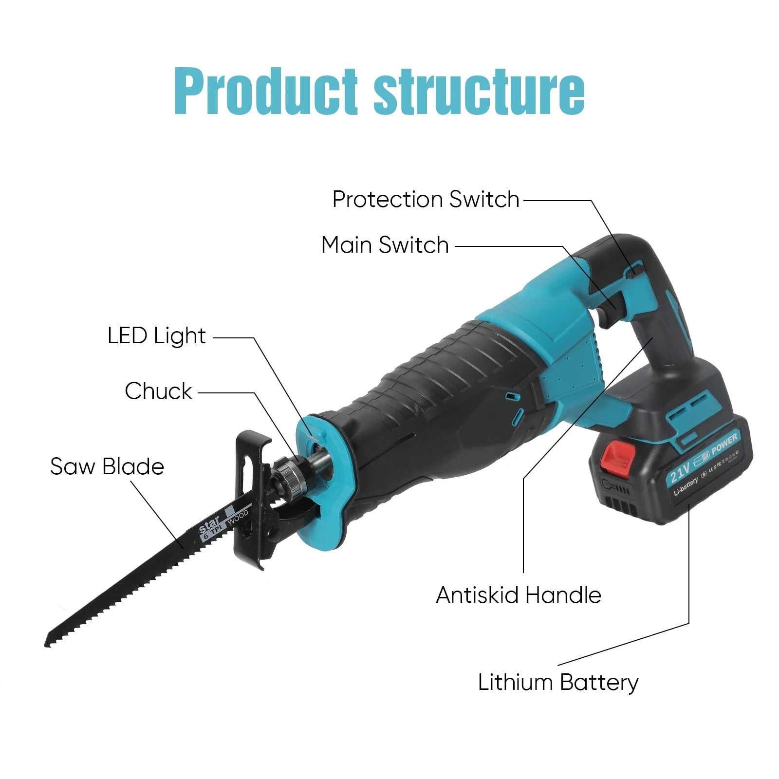 Fierastrau reciproc, 2 baterii, taiere puternica, schimbare lama fara unelte, 32mm, plastic durabil