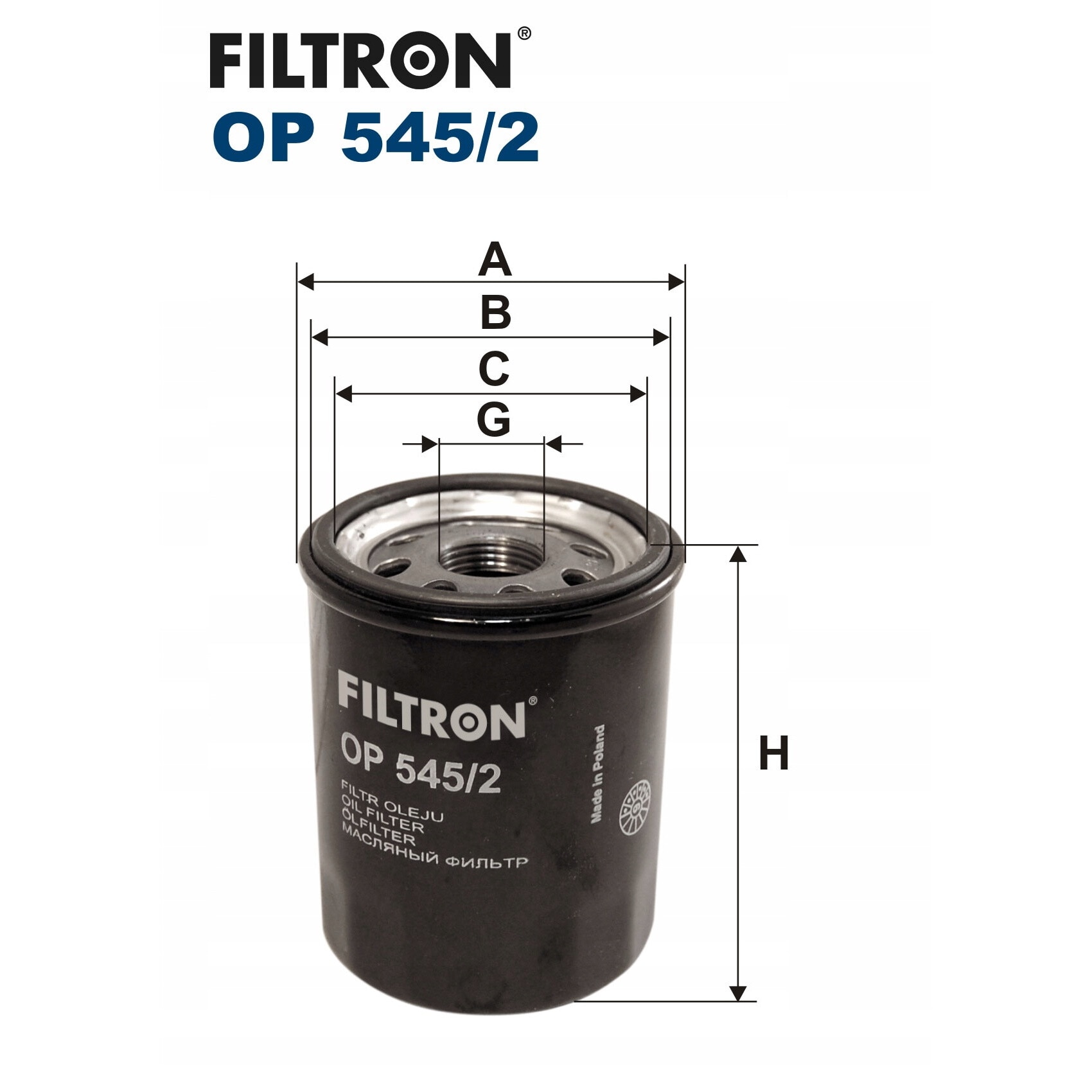 Filtru De Ulei, Op545/2, Aplicatii Pentru Diverse Modele, Tip Filtru Pentru Motoare Pe Benzina, Filtru Original Al Unei Companii Cunoscute Pe Piata Poloneza, Inaltime 85 mm, Dimensiunea Filetului M 20X1.5, Diametru Exterior 68.5 mm