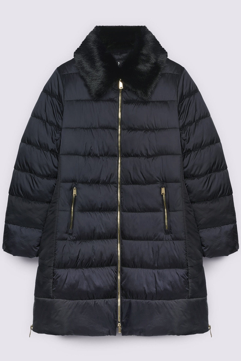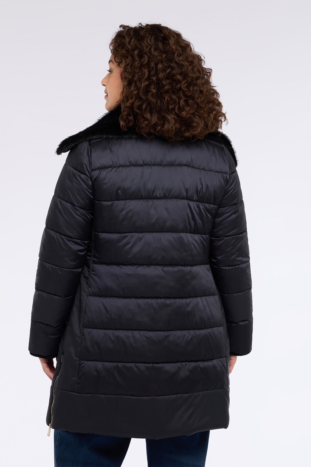 Fiorella Rubino - Geaca cu guler cu blana sintetica, Negru stins, 54