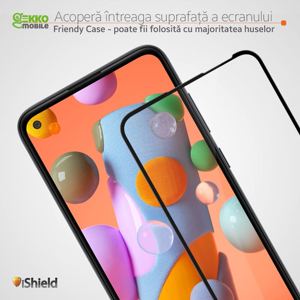 Folie iShield® compatibila Samsung M11 - MAGIC 6D Tempered Glass, Full Glue, protectie ecran, transparenta cu margini negre, usor curbate Negru