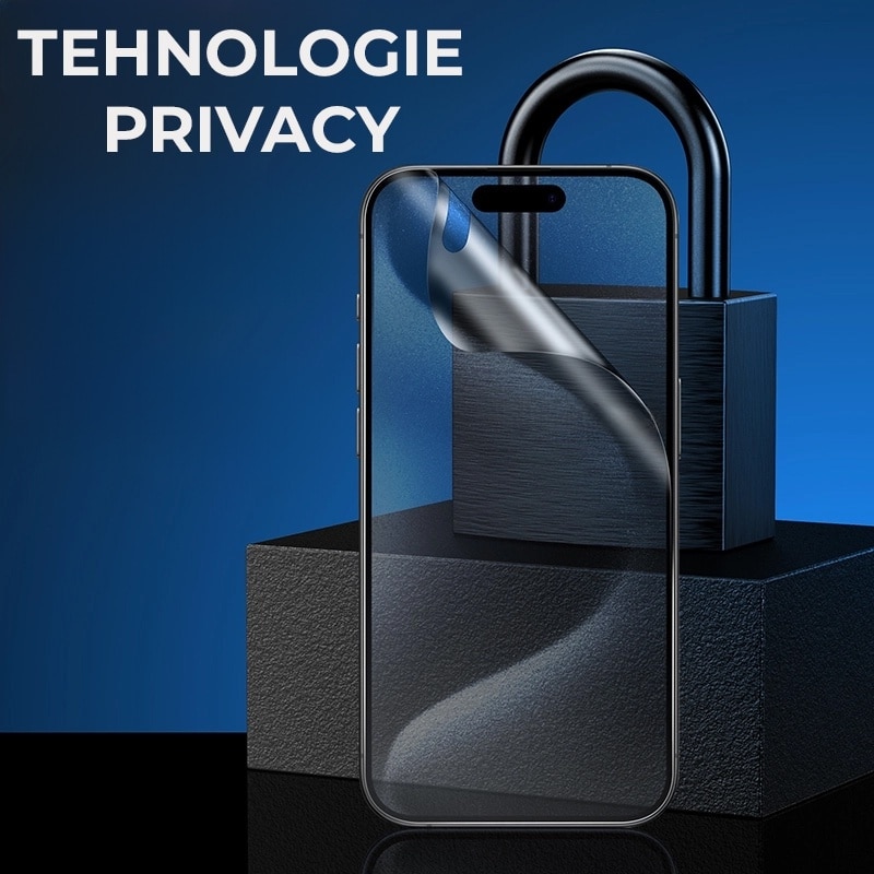 Folie Privacy Silicon Ecran pentru LG K50, Silicon Hydrogel, Flexible Hydro-Crystal, Protectie Completa, Full Glue, Instalare usoara, Set complet pentru Instalare