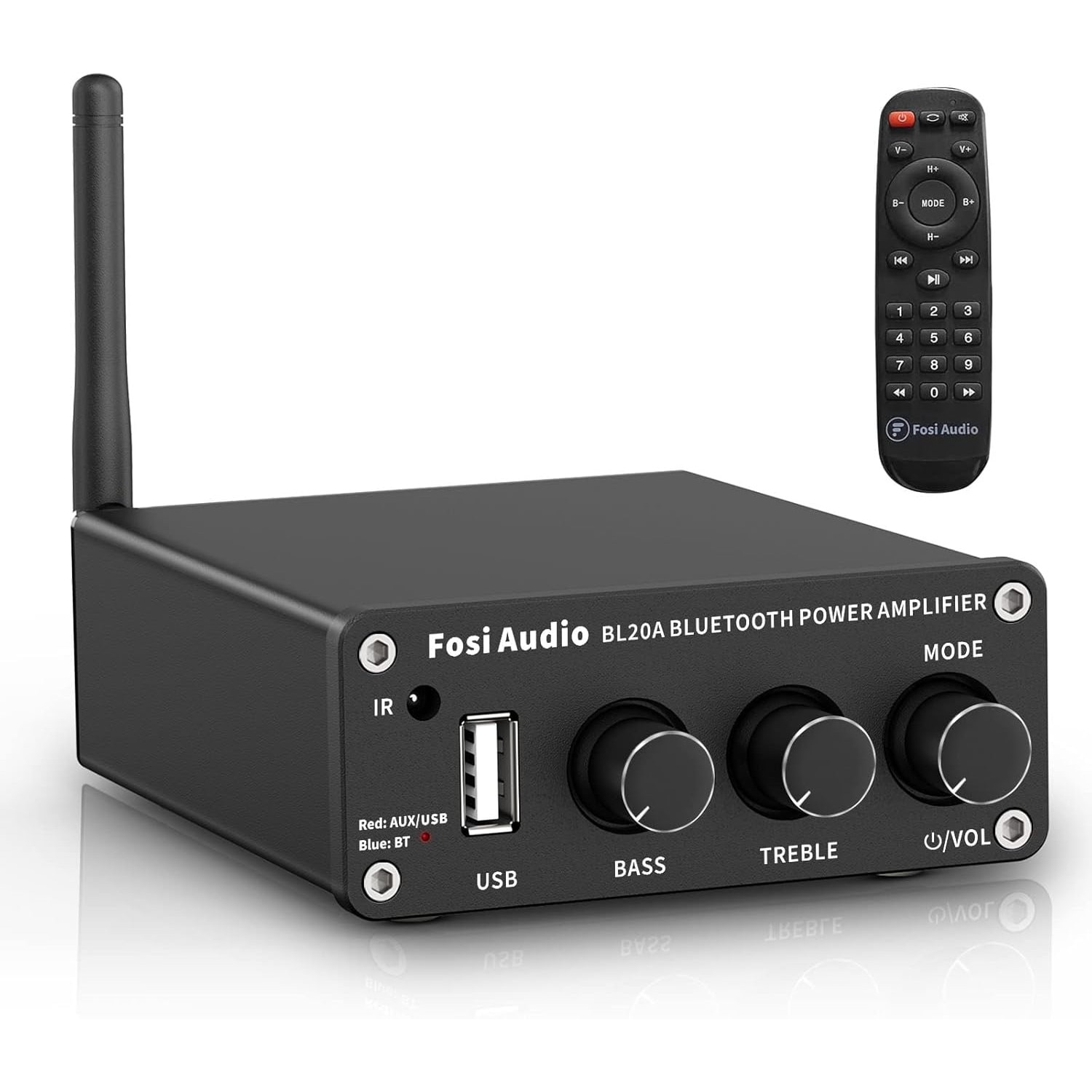 Amplificatorul de putere Fosi Audio BL20A cu 2.1 canale, Bluetooth 5.0, pentru sisteme home theater, poate alimenta majoritatea boxelor pasive/amplificate/de raft/de tavan. Cu iesire AUX de 3,5 mm, BL20A se poate conecta simultan la boxe pasive si boxe amplificate. Sau va puteti conecta la un preamplificator prin iesirea de 3,5 mm pentru a construi un sistem audio simplu.
