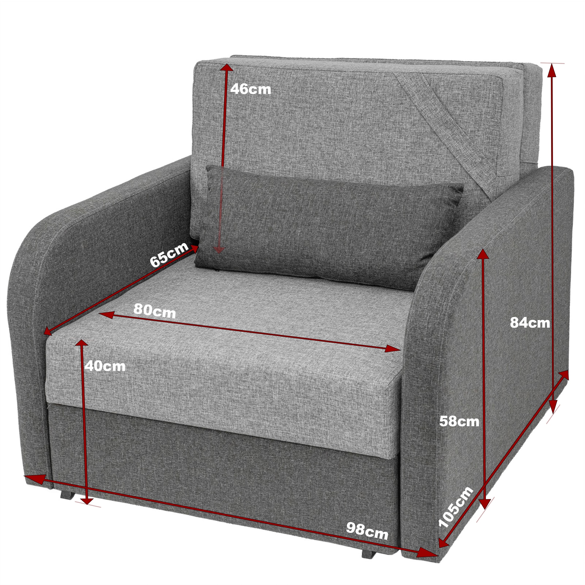 | Continut pachet | 1 fotoliu 2 perne mari cu suport (79 x 44 cm) 1 perna mica suplimentara (63 x 26 cm) |