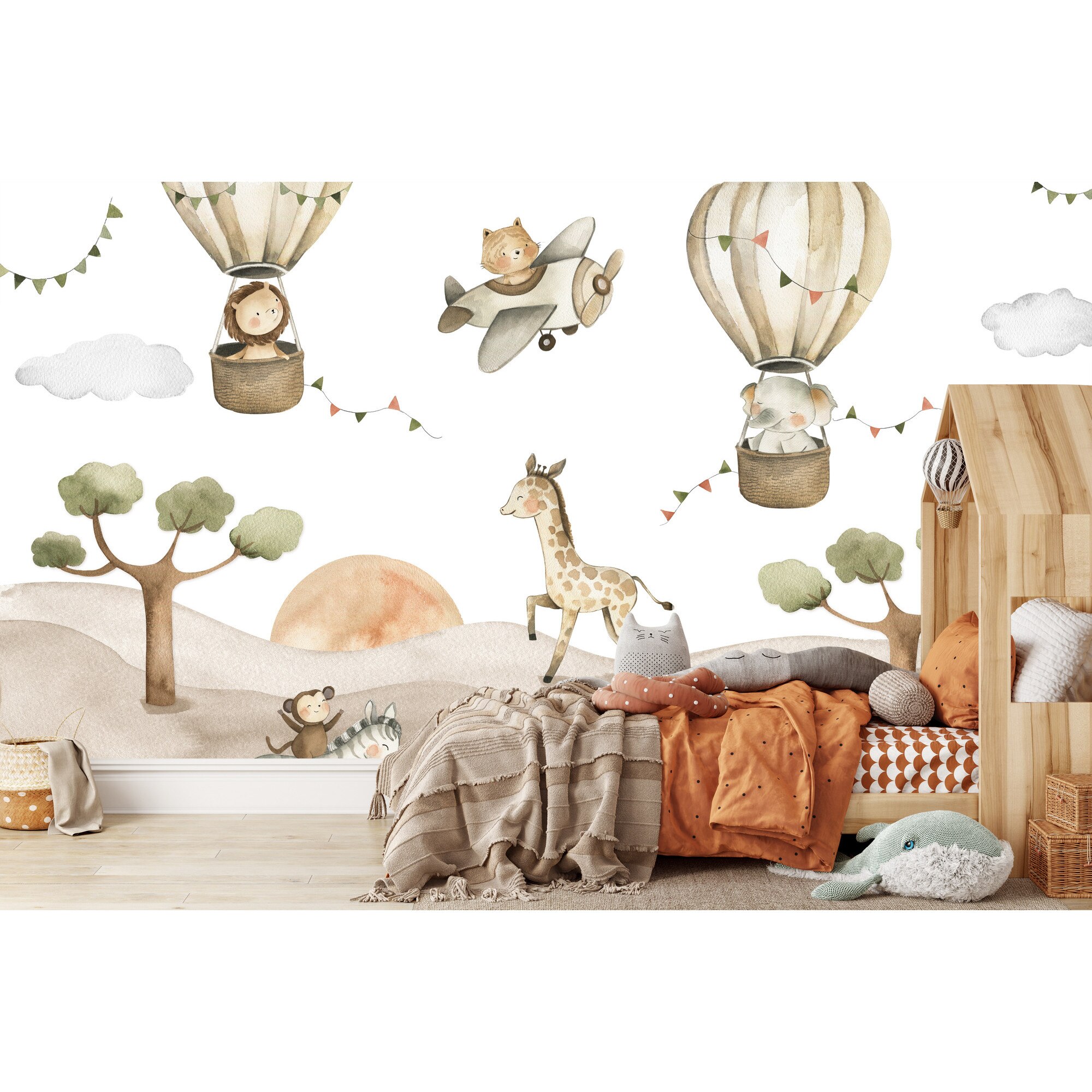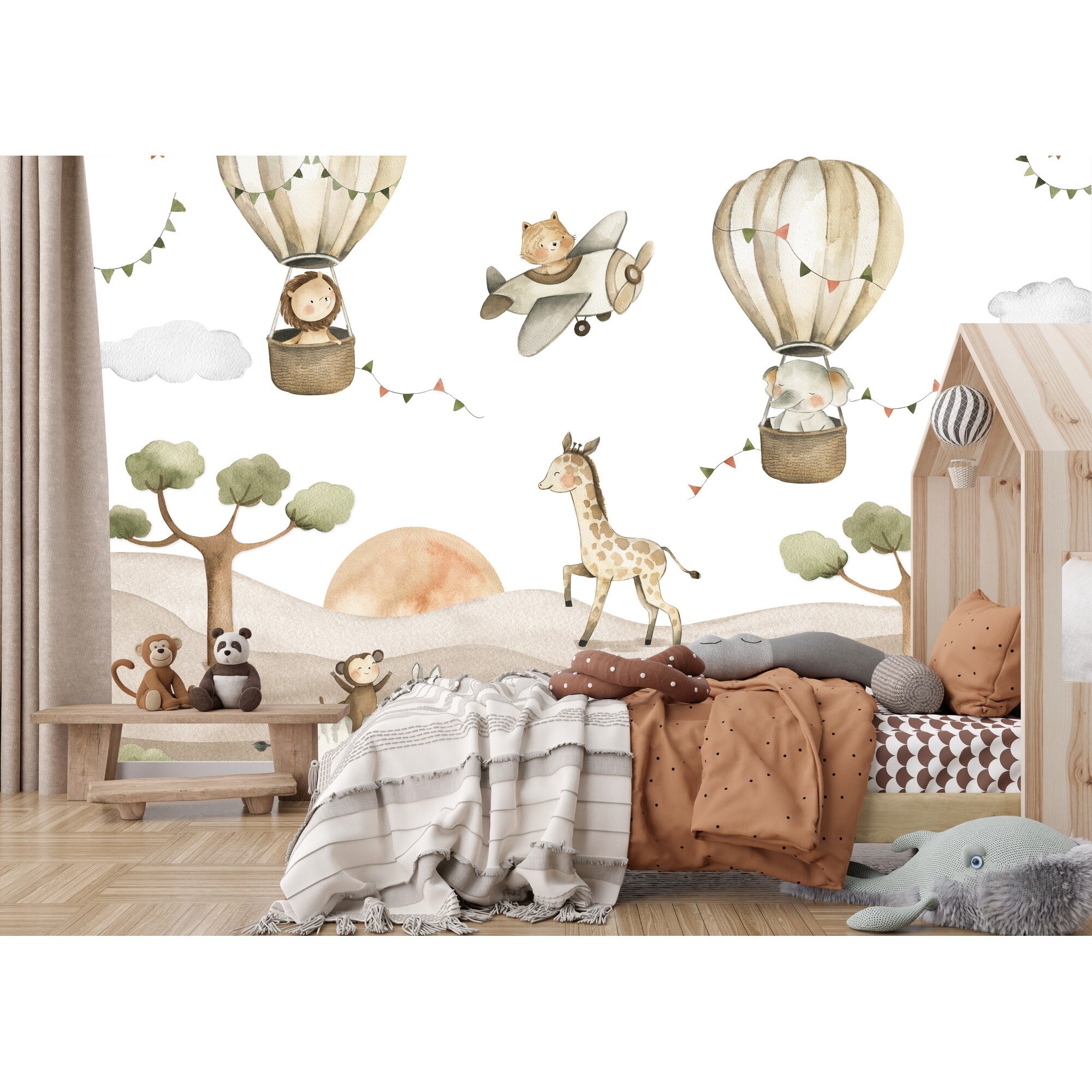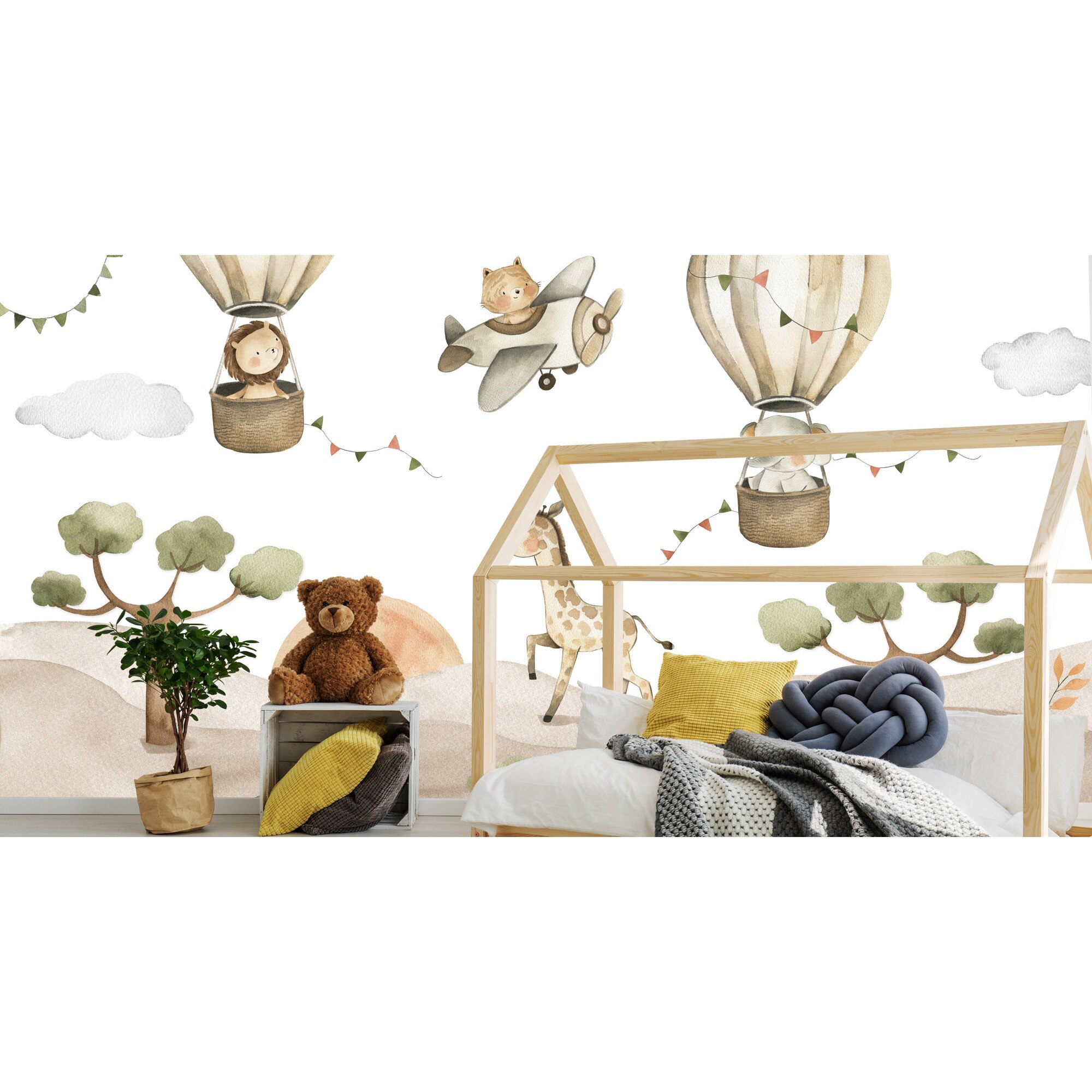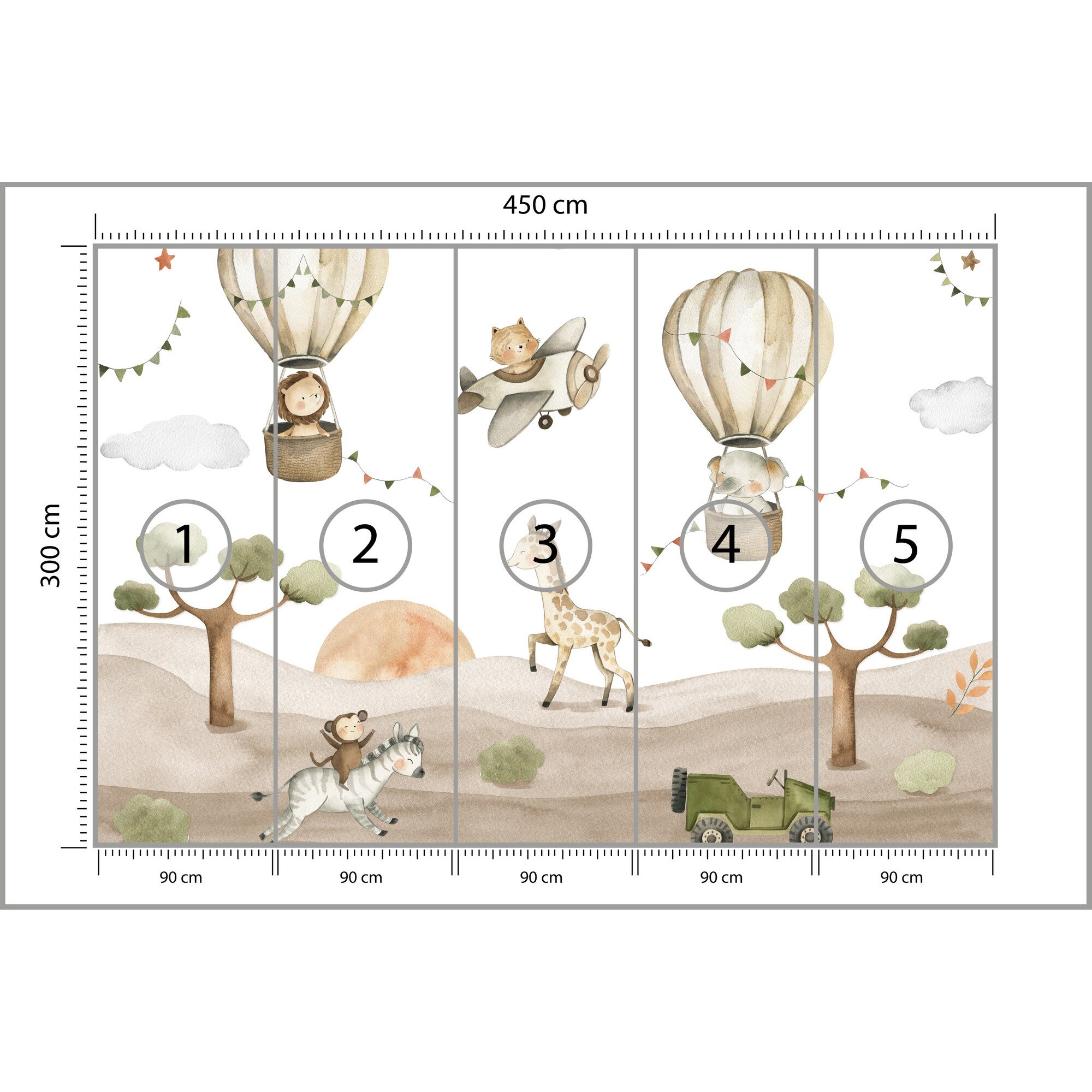 Fototapet Muralo animale salbatice zburatoare 450 cm x 300 cm decor dragut pentru camera copiilor