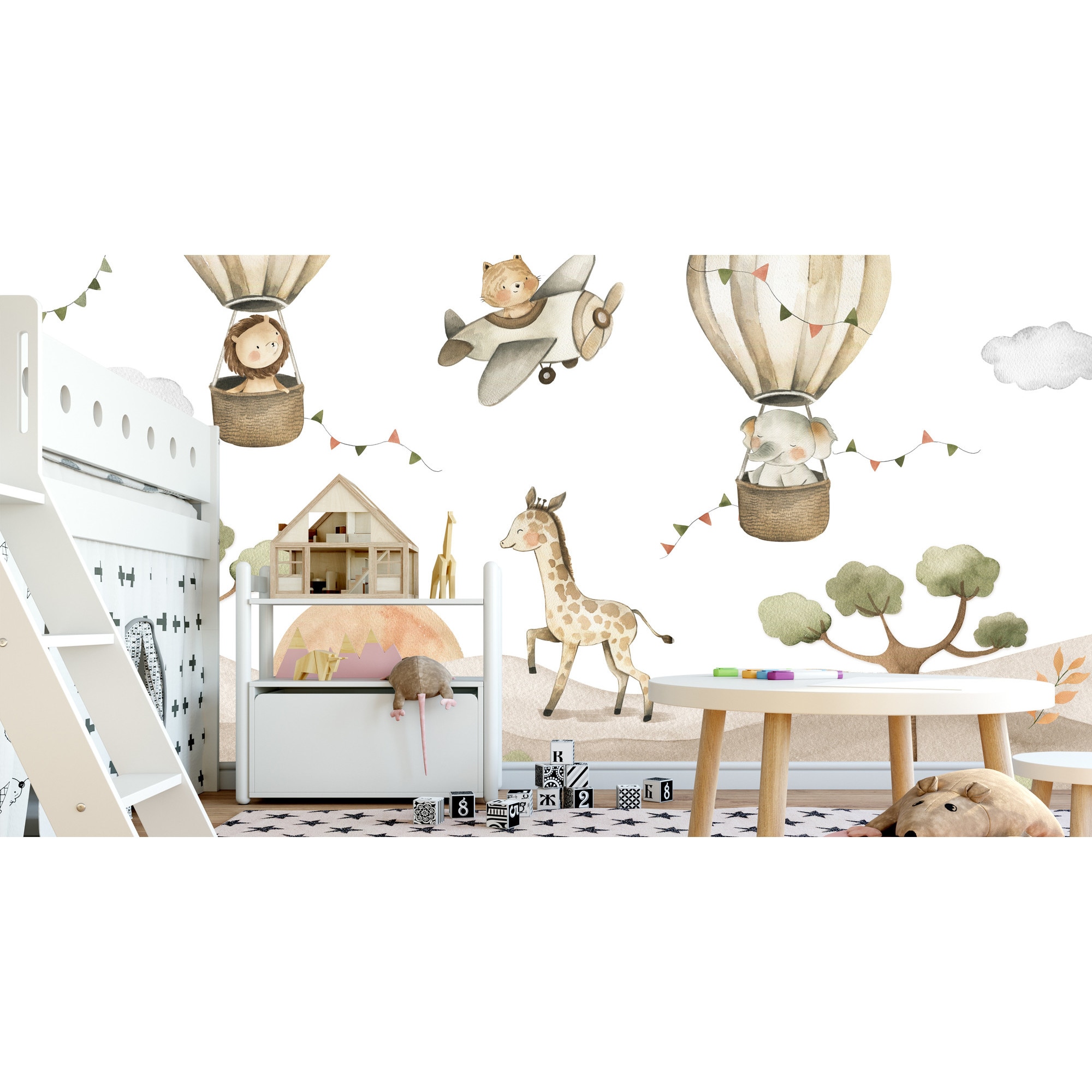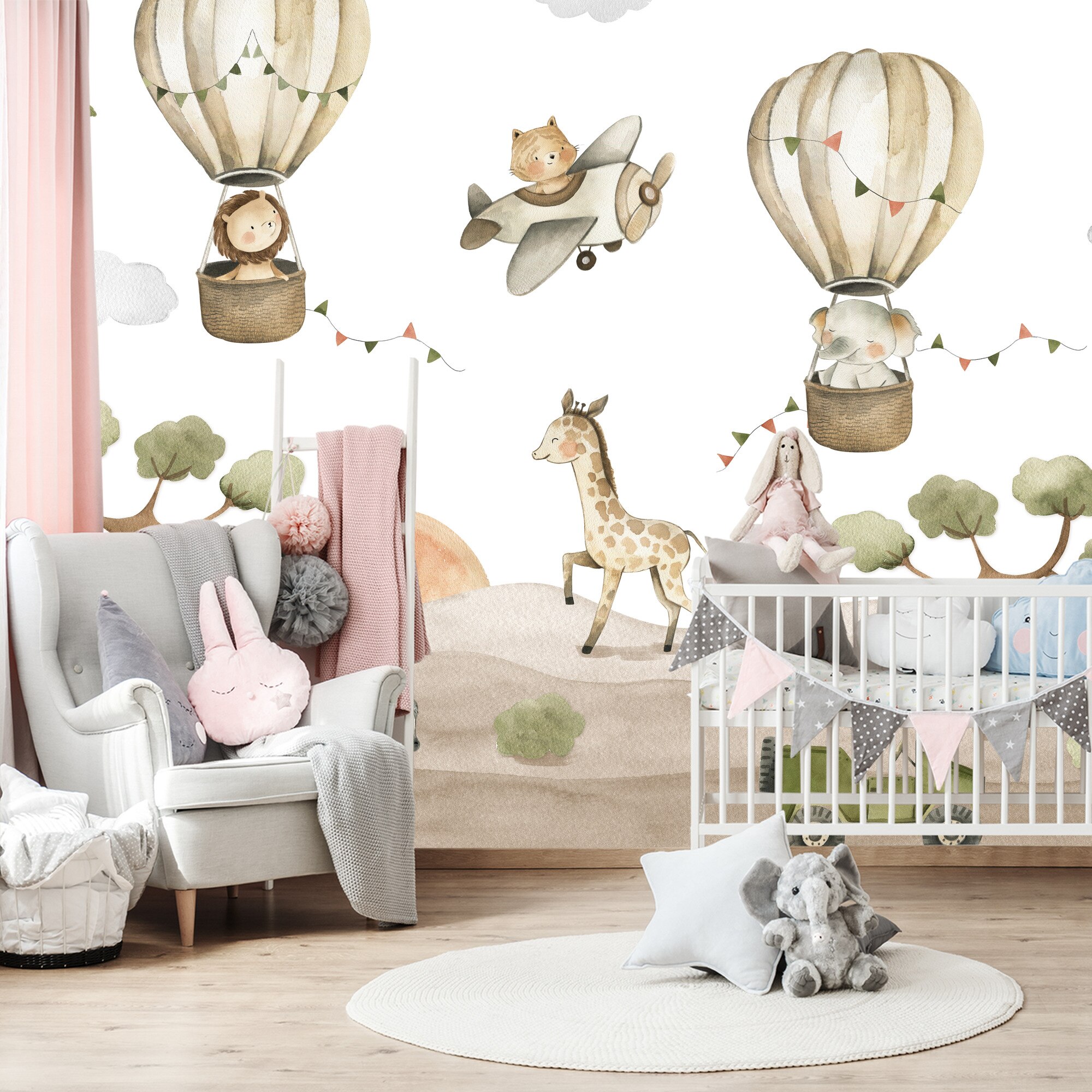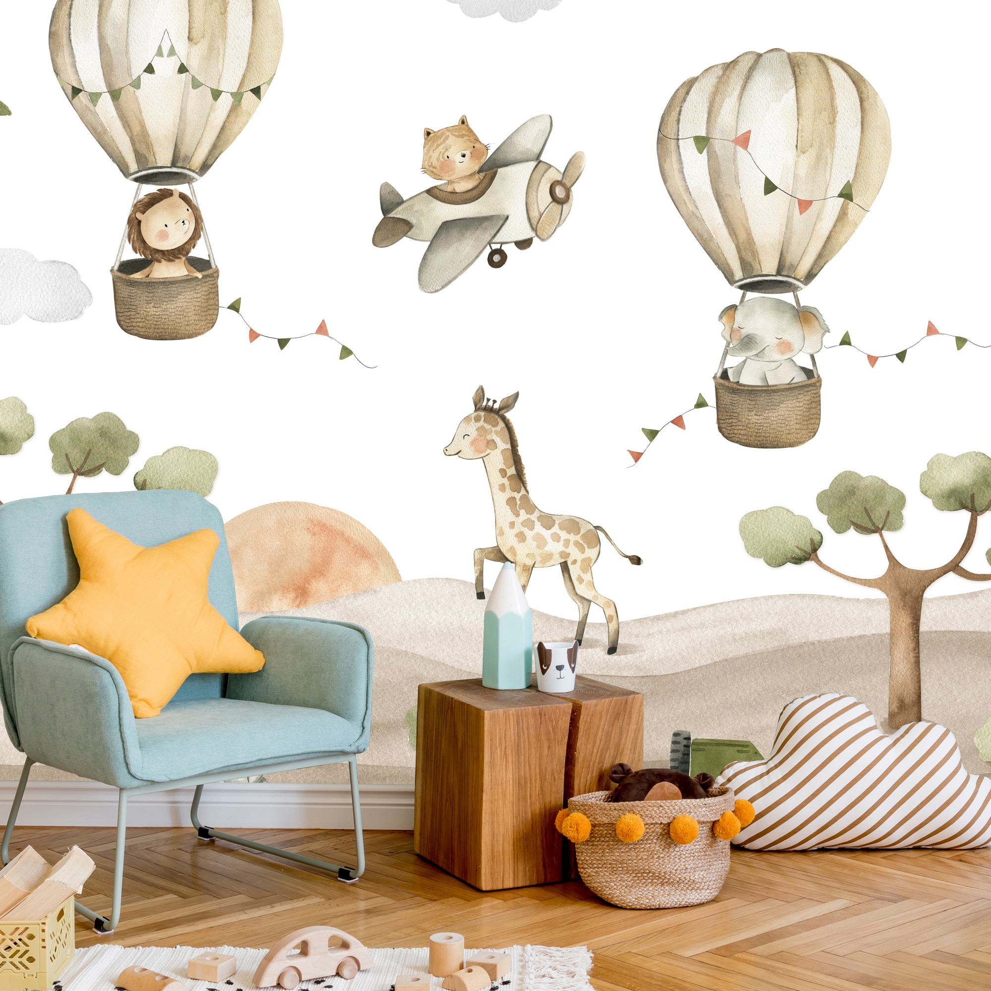Fototapet Muralo animale salbatice zburatoare 450 cm x 300 cm decor dragut pentru camera copiilor