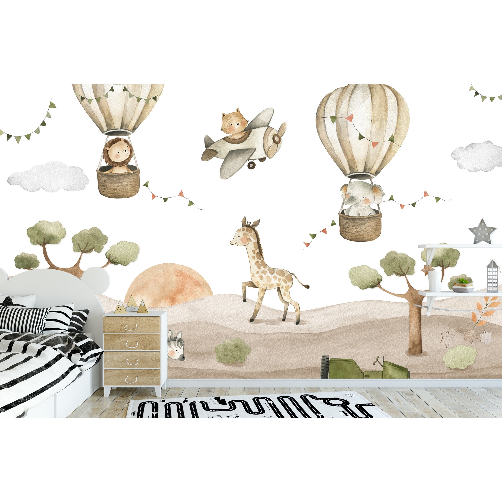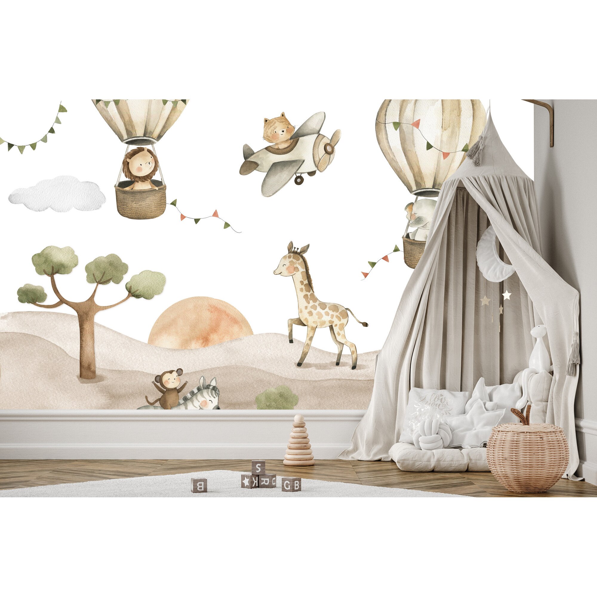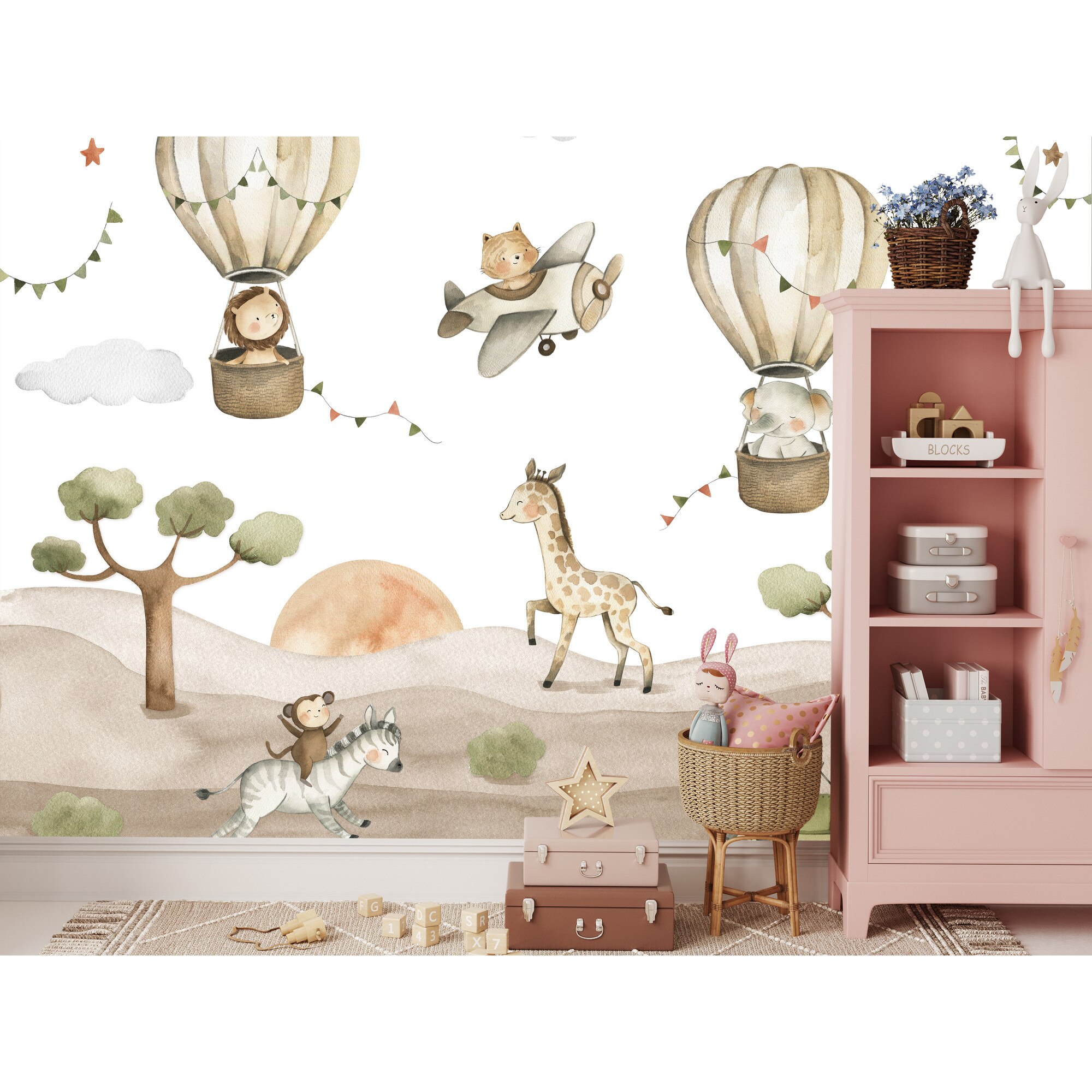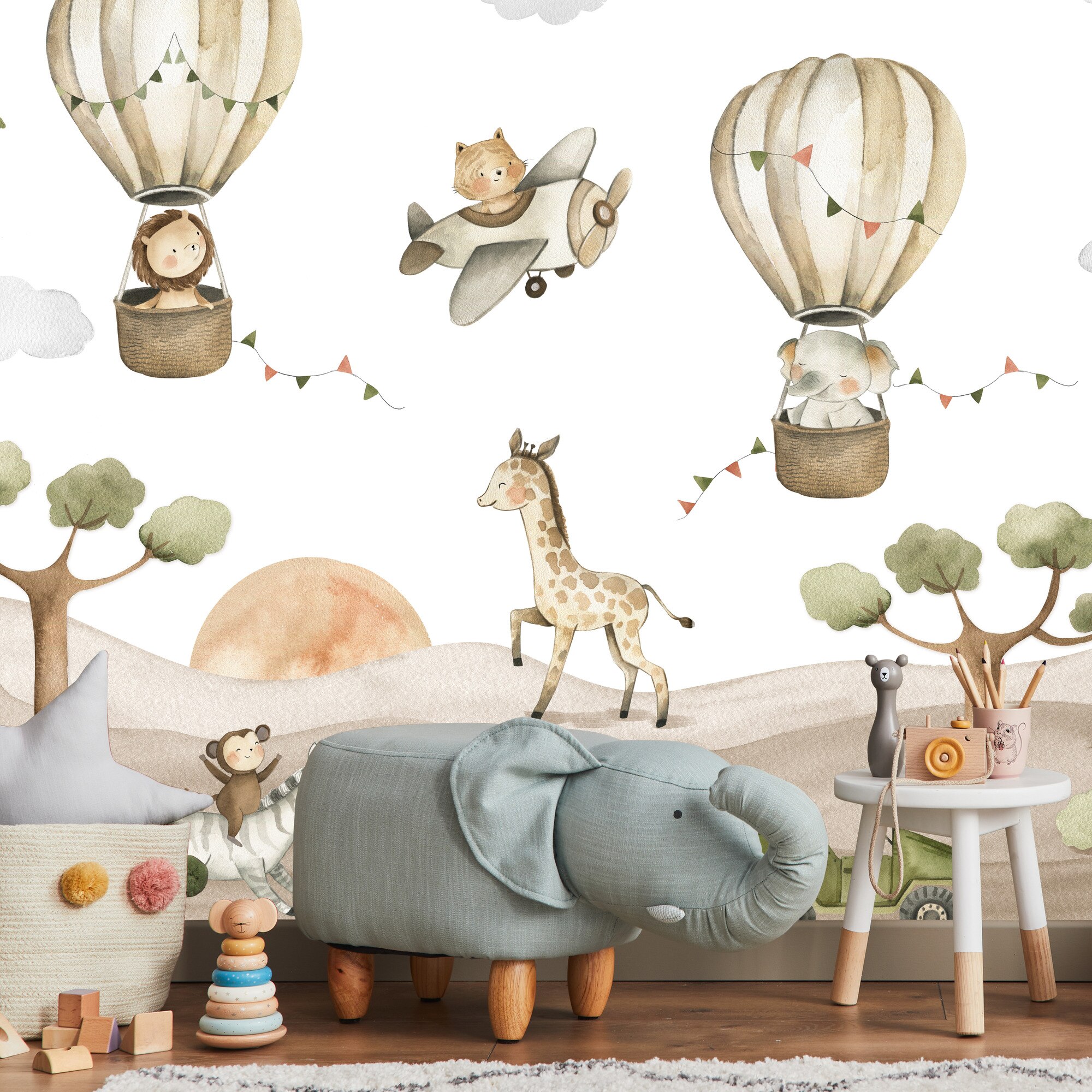 Fototapet Muralo animale salbatice zburatoare 450 cm x 300 cm decor dragut pentru camera copiilor