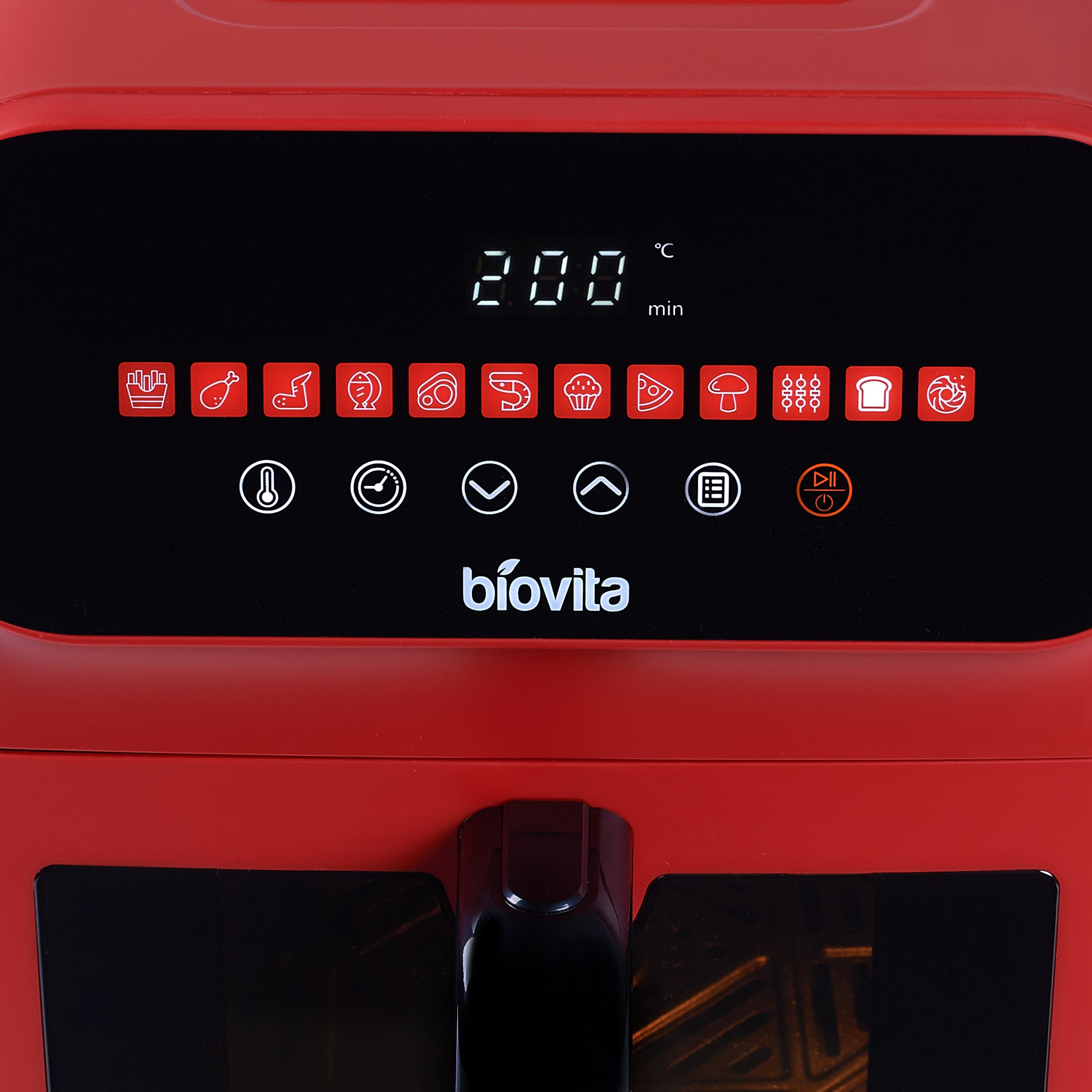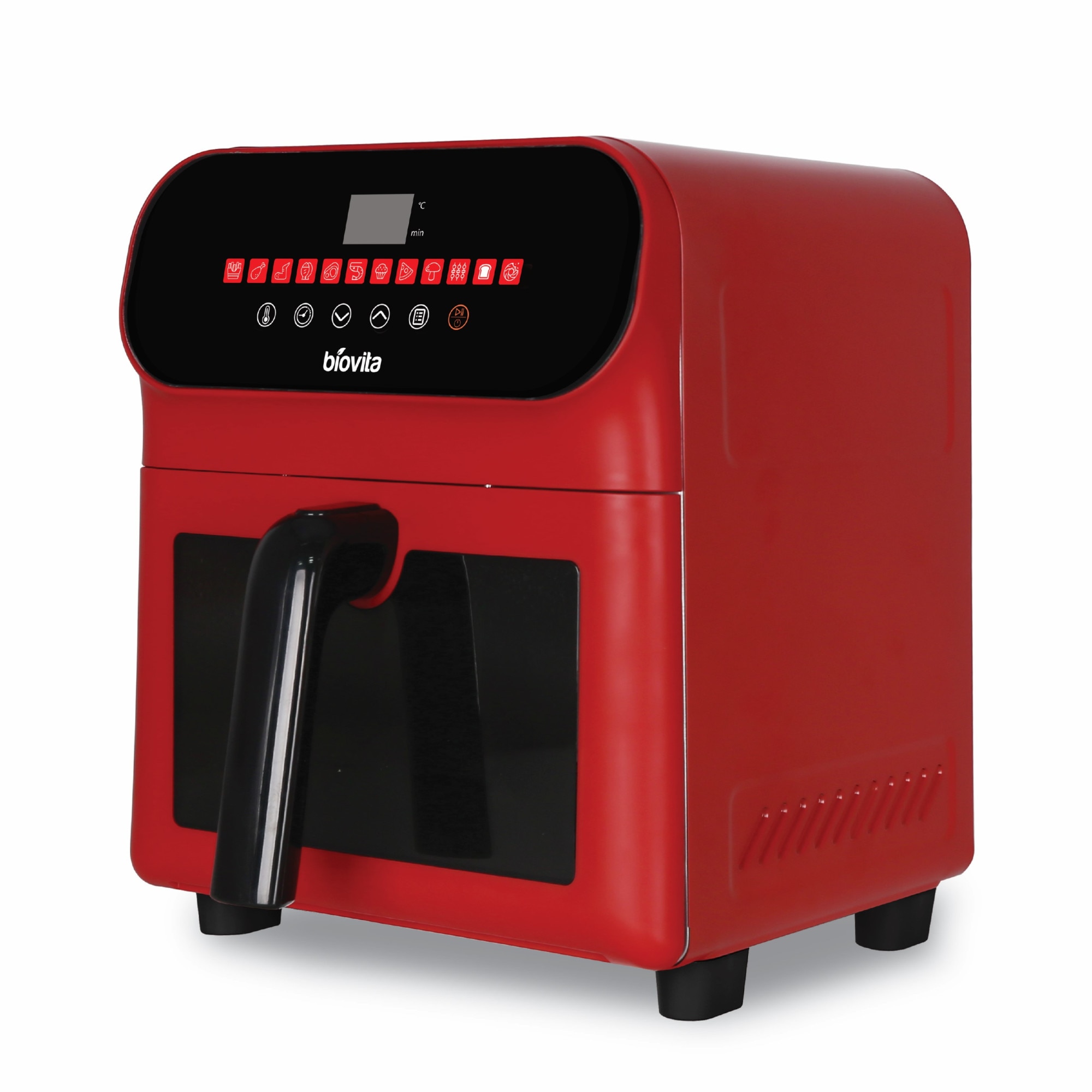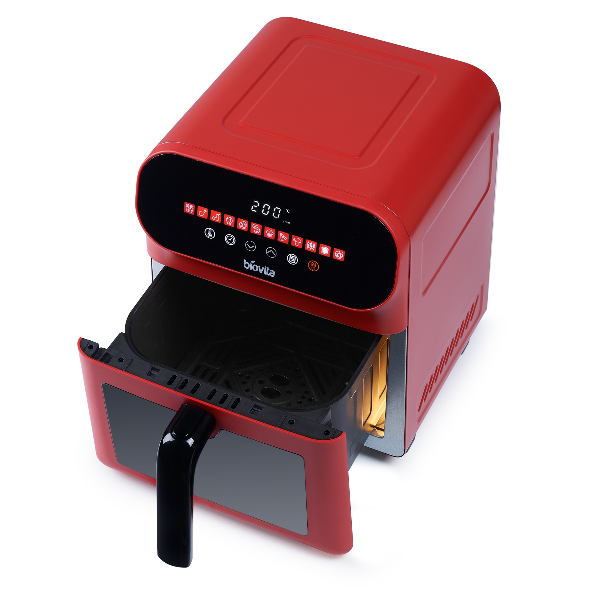 Friteuza cu Aer Cald / Air Fryer, Biovita CUBE, 6L, 12 Programe, Sertar cu geam transparent, 1700W, Rosie