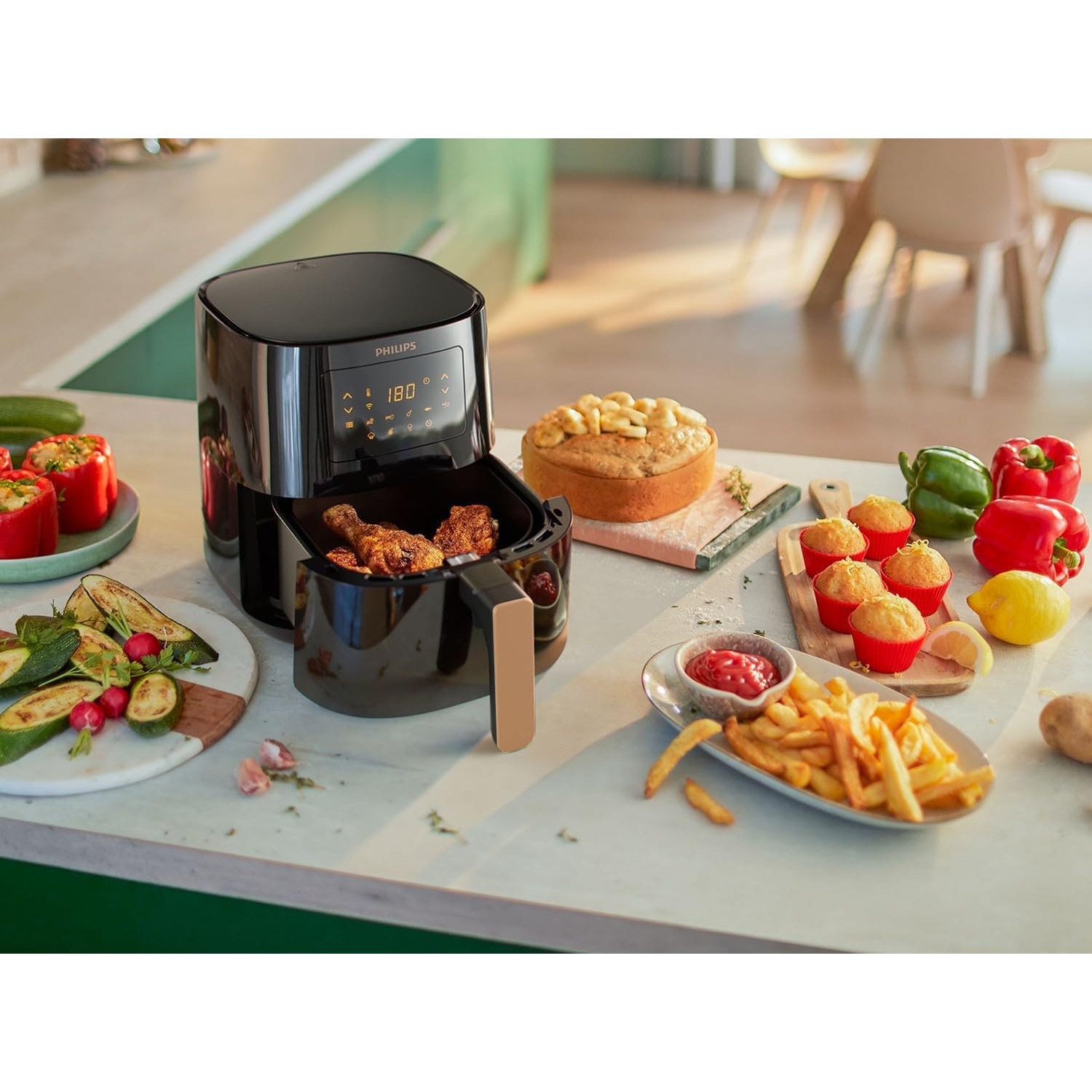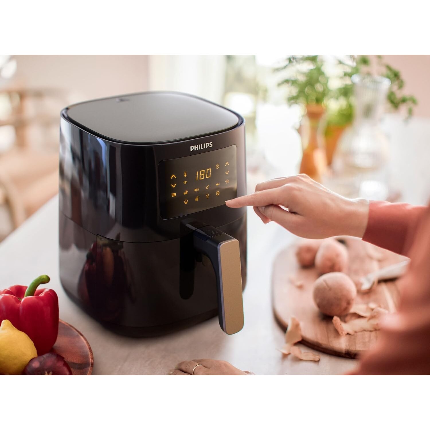 Friteuza cu aer cald Philips HD9255/80, 4.1L, 0.8 Kg, 13 programe, Wi-Fi, Tehnologie Rapid Air, Negru