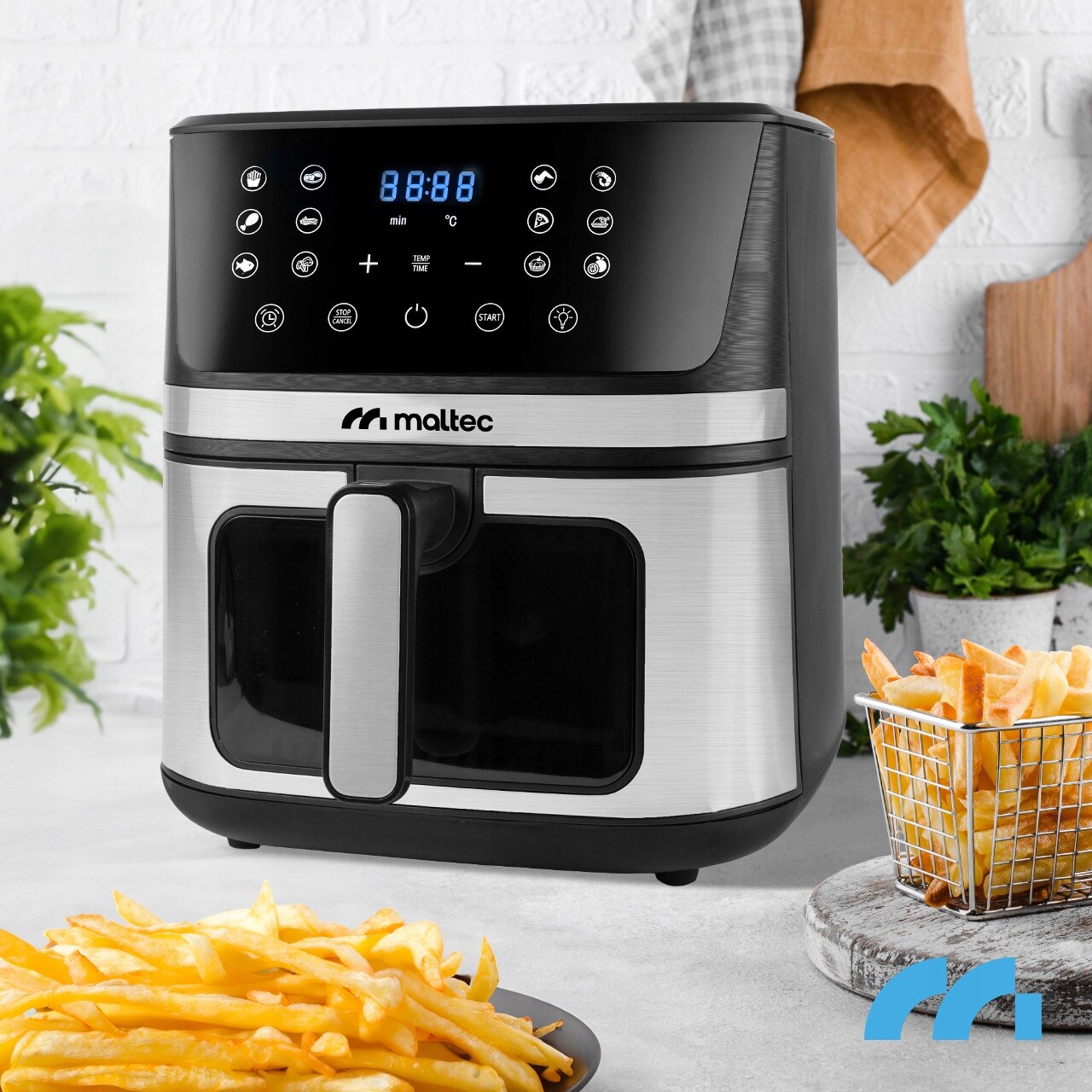 Friteuza fără ulei Maltec cu o capacitate de 7 litri este un aparat modern care combină capacitatea mare cu ușurința de utilizare. Designul elegant cu finisaj metalic face ca friteuza să se potrivească perfect în orice bucătărie.