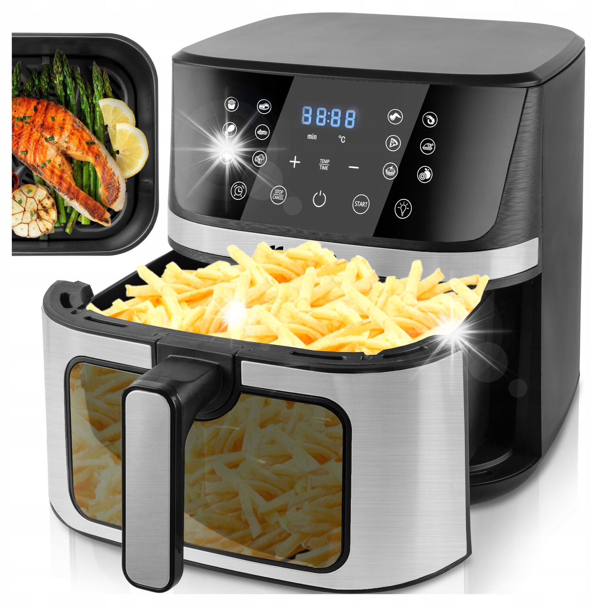 FRITEUZĂ FĂRĂ ULEI AIR FRYER MARE 7L PUTERNICĂ 1800W CU FEREASTRĂ