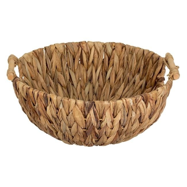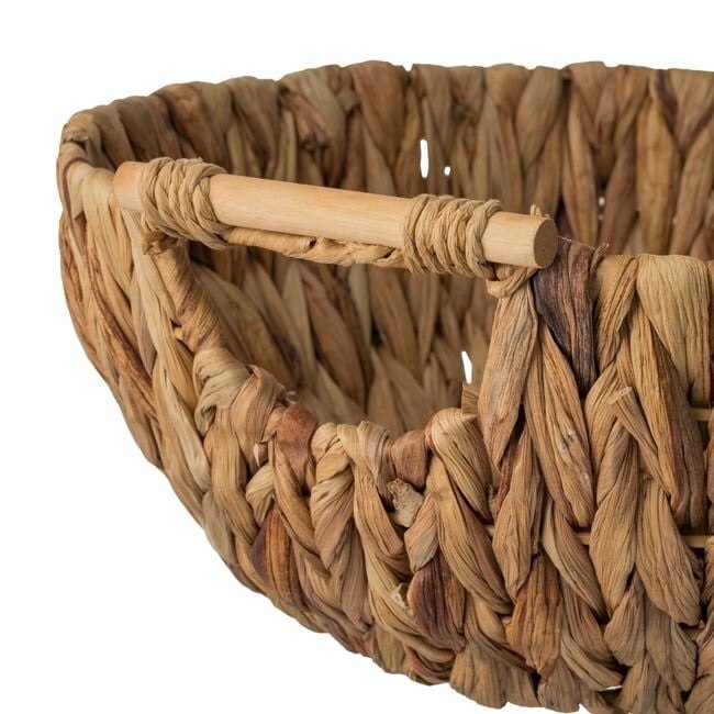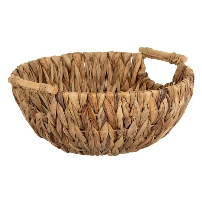 Fructiera Ø38x13 cm din Hiacint Acvatic cu Manere din Lemn – Cos Rustic Decorativ pentru Fructe, Paine sau Decoratiuni – ANTBro®