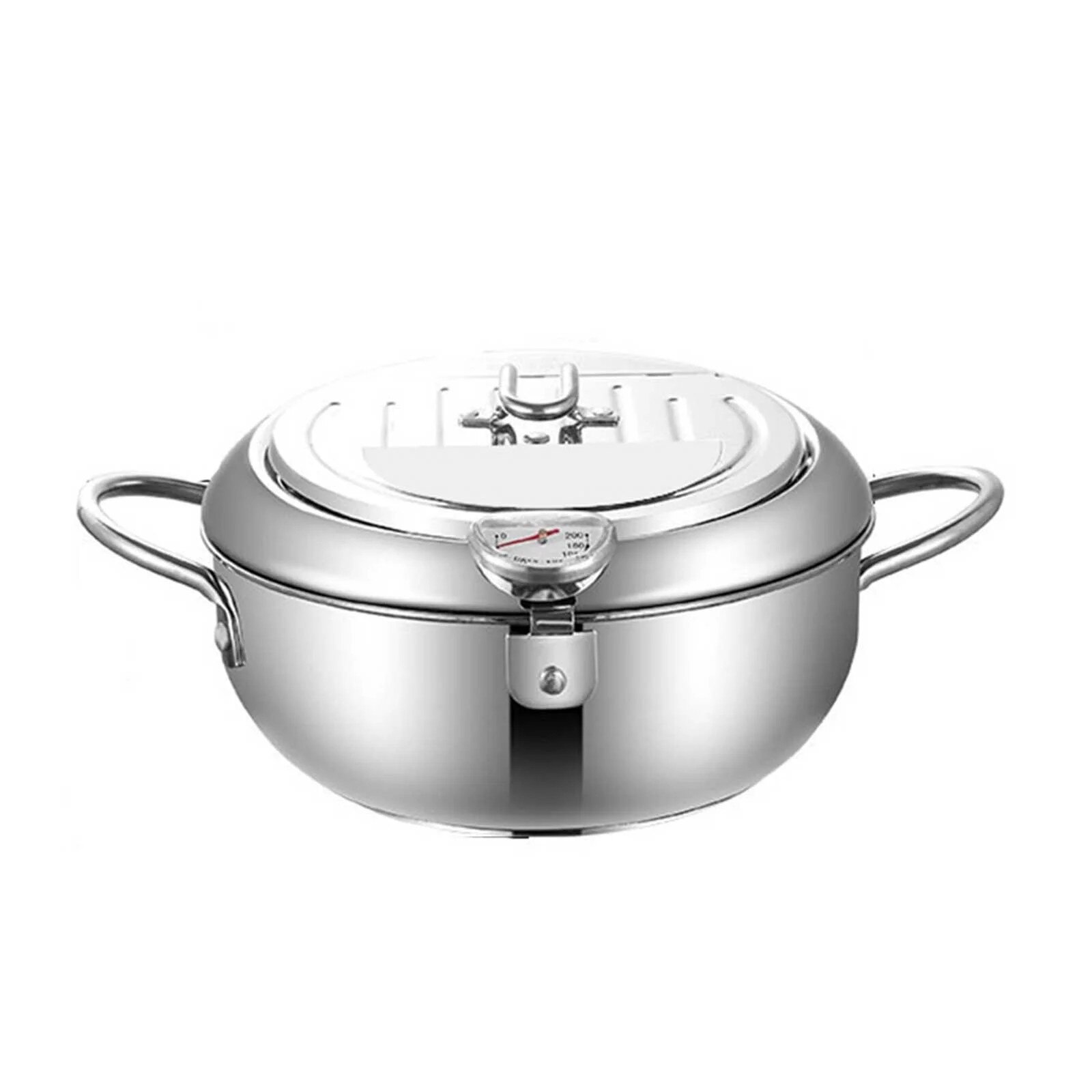 Fryer adanc din otel inoxidabil, Fokelyi, cu capac, suport pentru scurgerea uleiului, 2 persoane, pentru utilizare in bucatarie