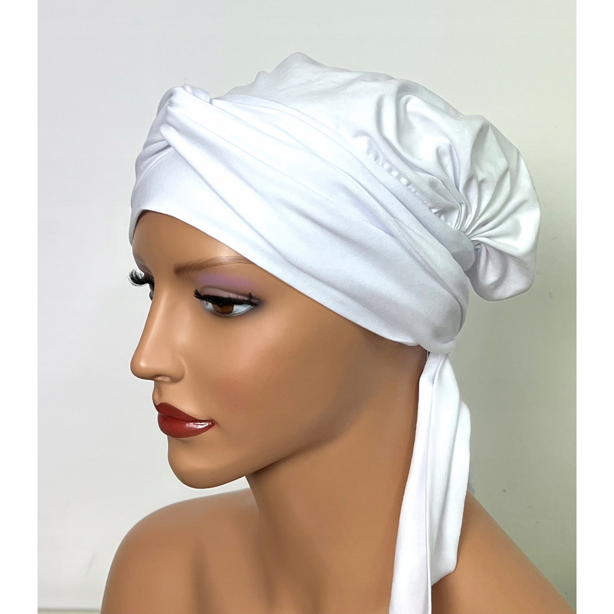 Eva Design - Fular alb pentru femei, turban Lara din bumbac, elastic, fara captuseala, dimensiune universala