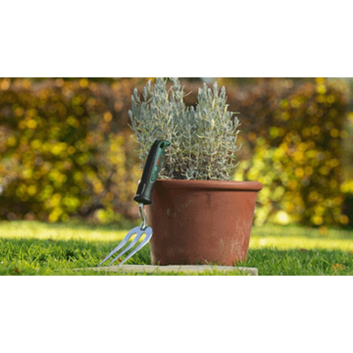 Furca de mana pentru gradinarit BOSCH Hand Fork S, 320 x 81 x 58 mm, din otel inoxidabil, maner TPR aderent