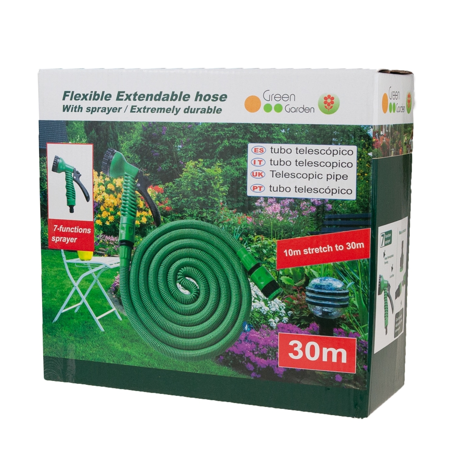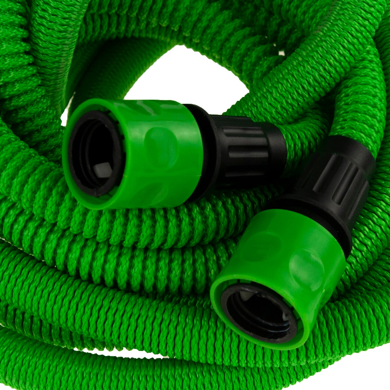 Furtun de gradinarit extensibil cu pistol de udare si racorduri 1/2" si 3/4", 10-30m, Verde
