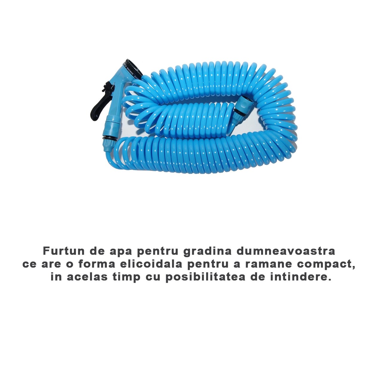 Furtun extensibil Tiessa, 15m, 4 functii, duza ajustabila, spiralat, pentru gradina, albastru