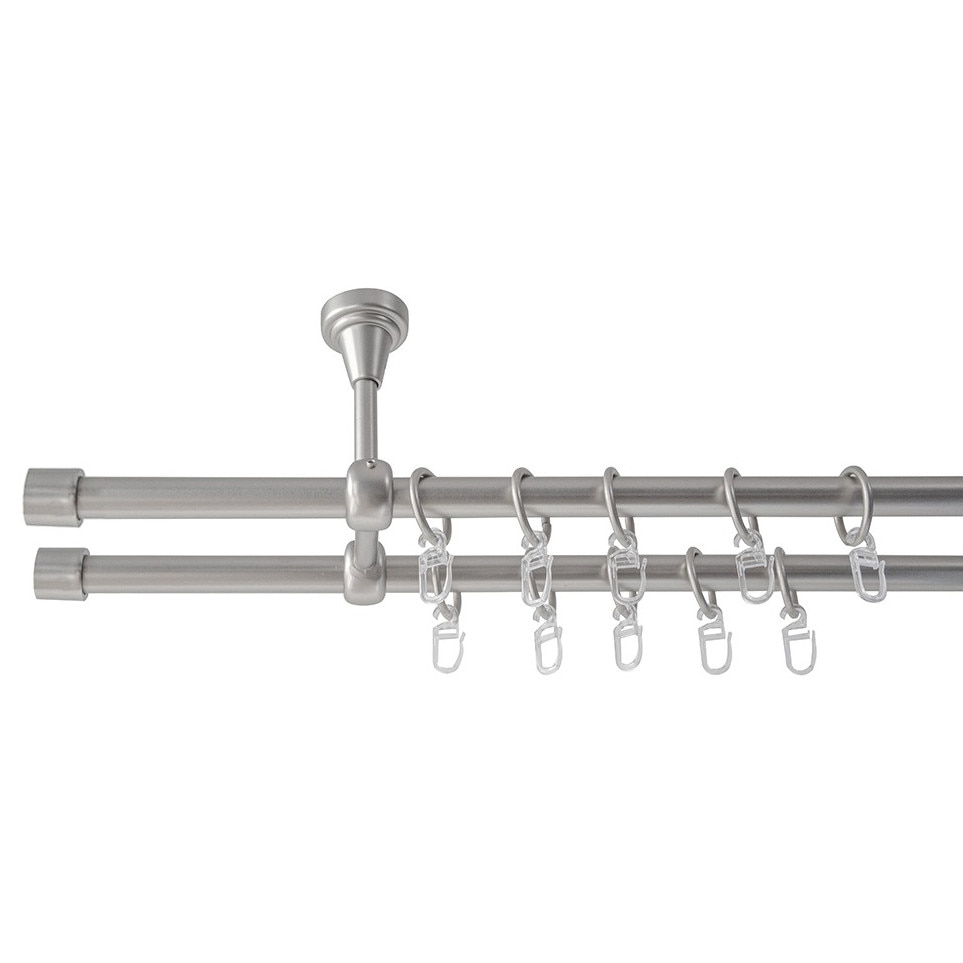 Galerie metalica 240 cm pentru perdele cu prindere in tavan, dubla, model Dop, grosime 19 mm, inox, KIT COMPLET