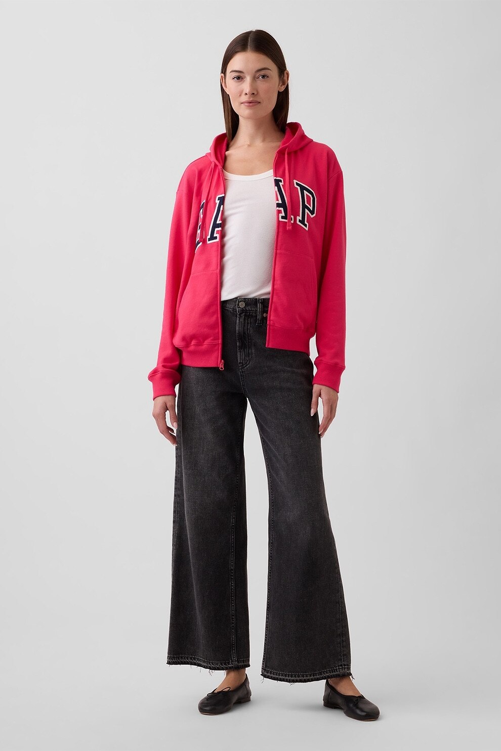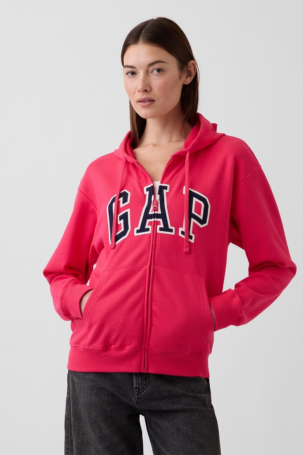 GAP - Hanorac cu fermoar si imprimeu logo, Rosu/Bleumarin