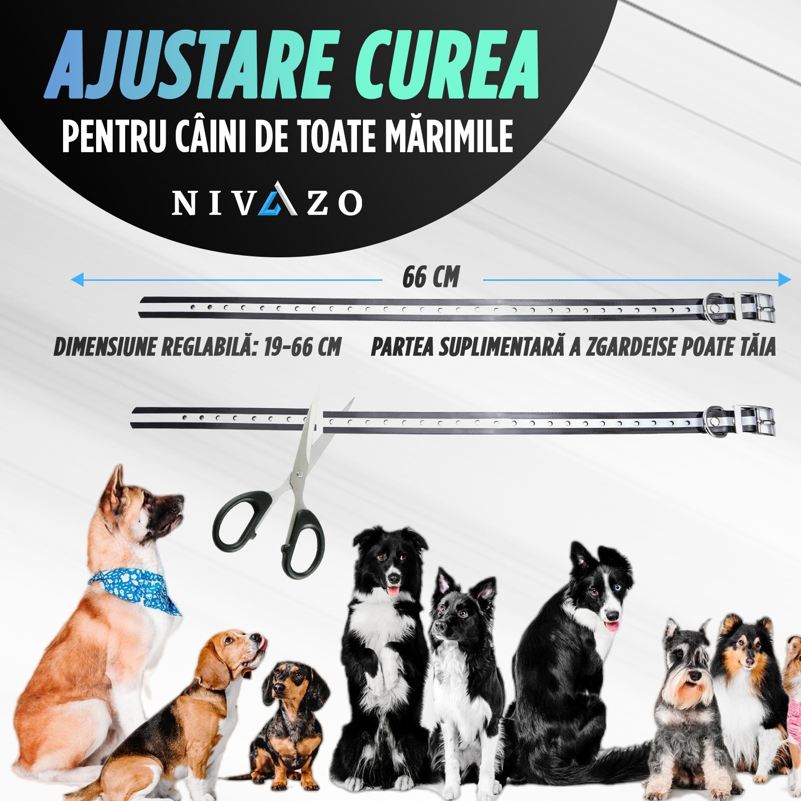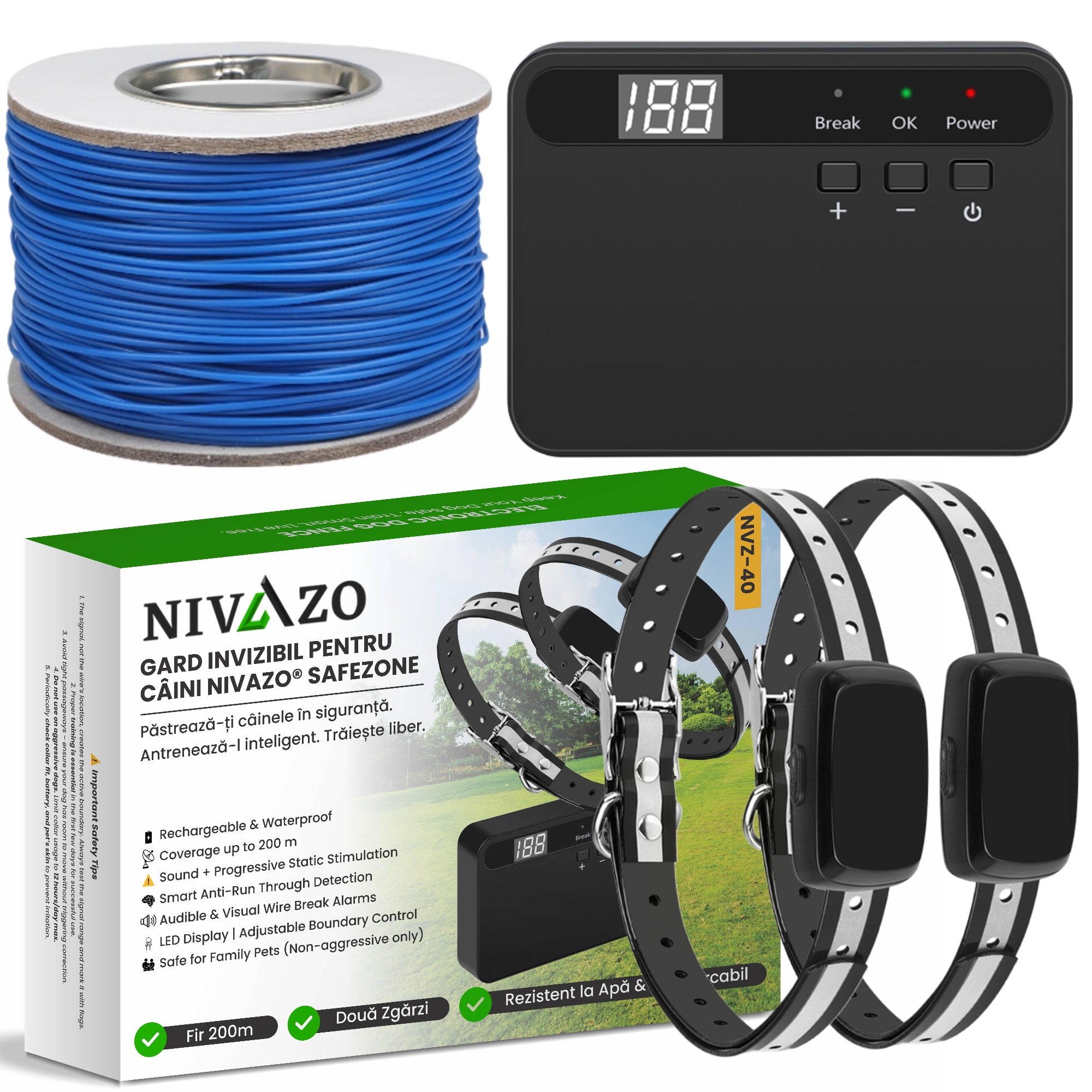 Gard invizibil pentru caini NVZ-862, 2 zgarzi cu transmitator, rezistenta la apa, sistem gard invizibil, suprafata maxima 5000 mp, rola cablu delimitare 200m