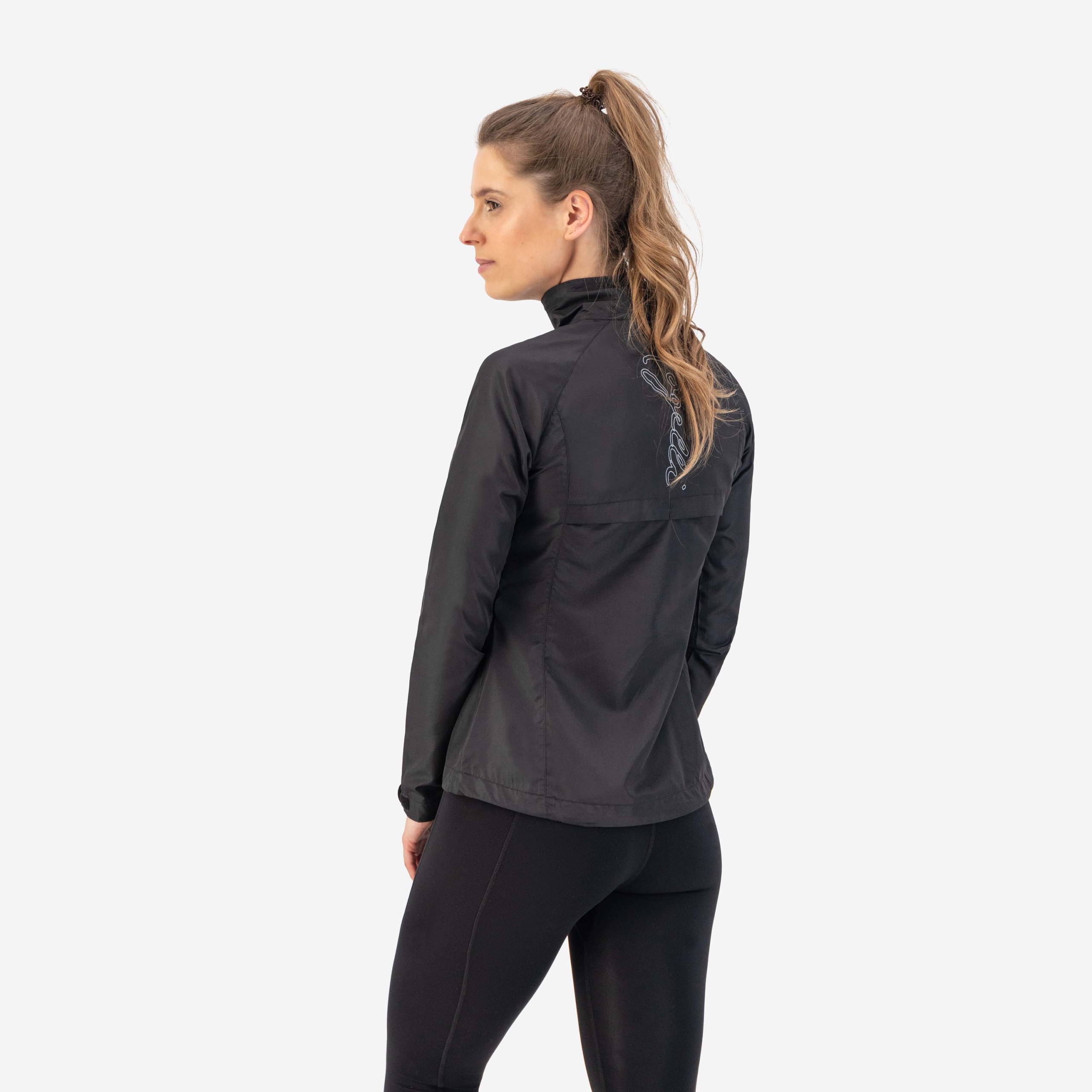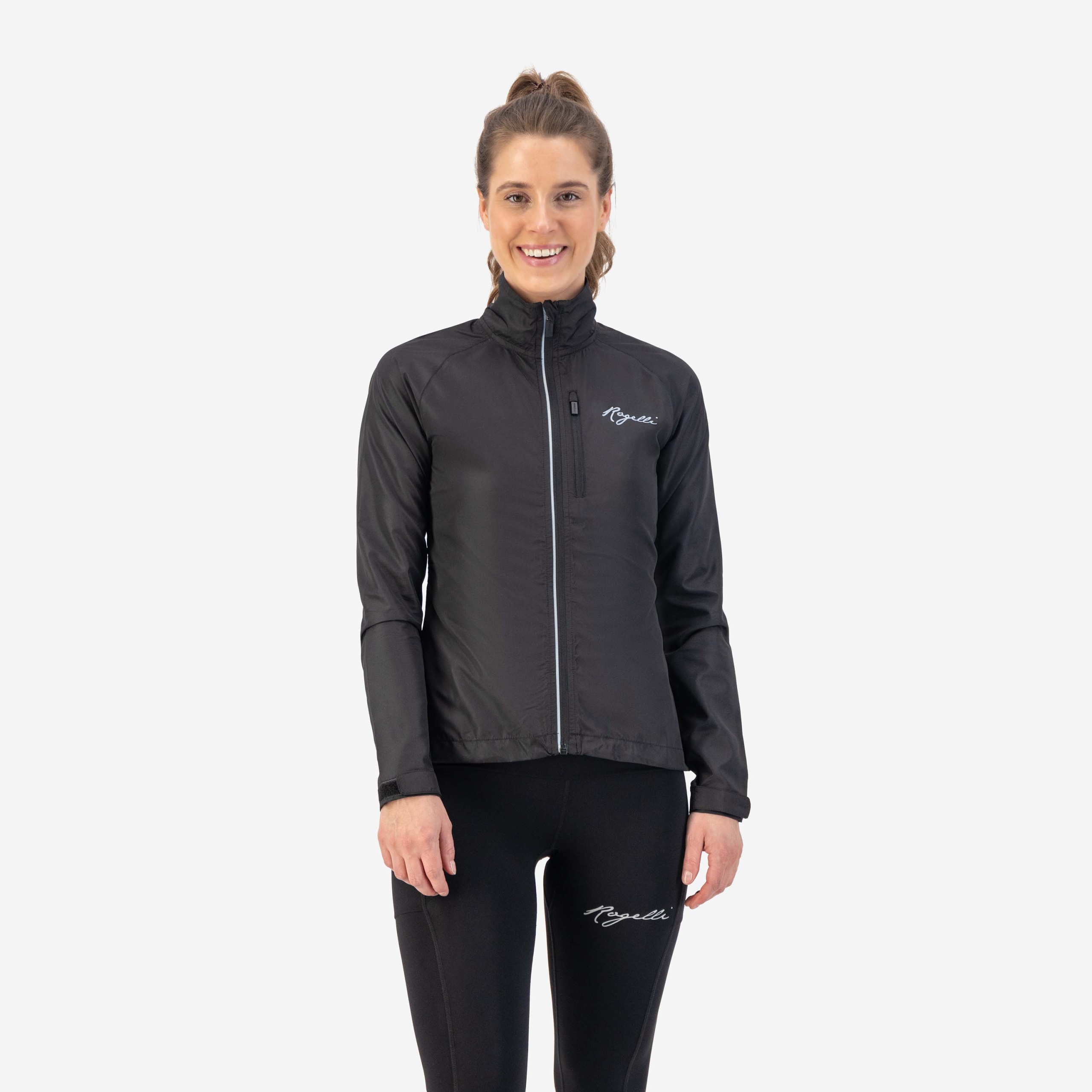 Geaca alergare dama, Rogelli, Poliester, Negru, Negru