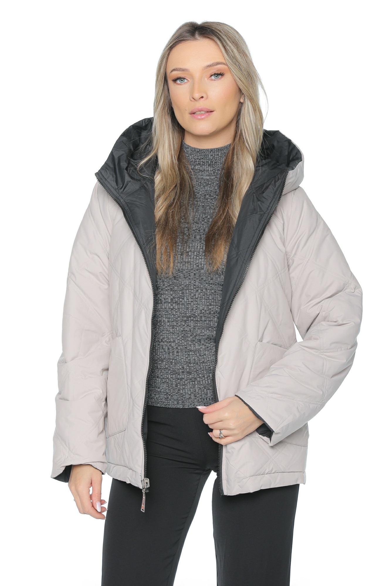 Geaca dama 2903, Negru/Crem