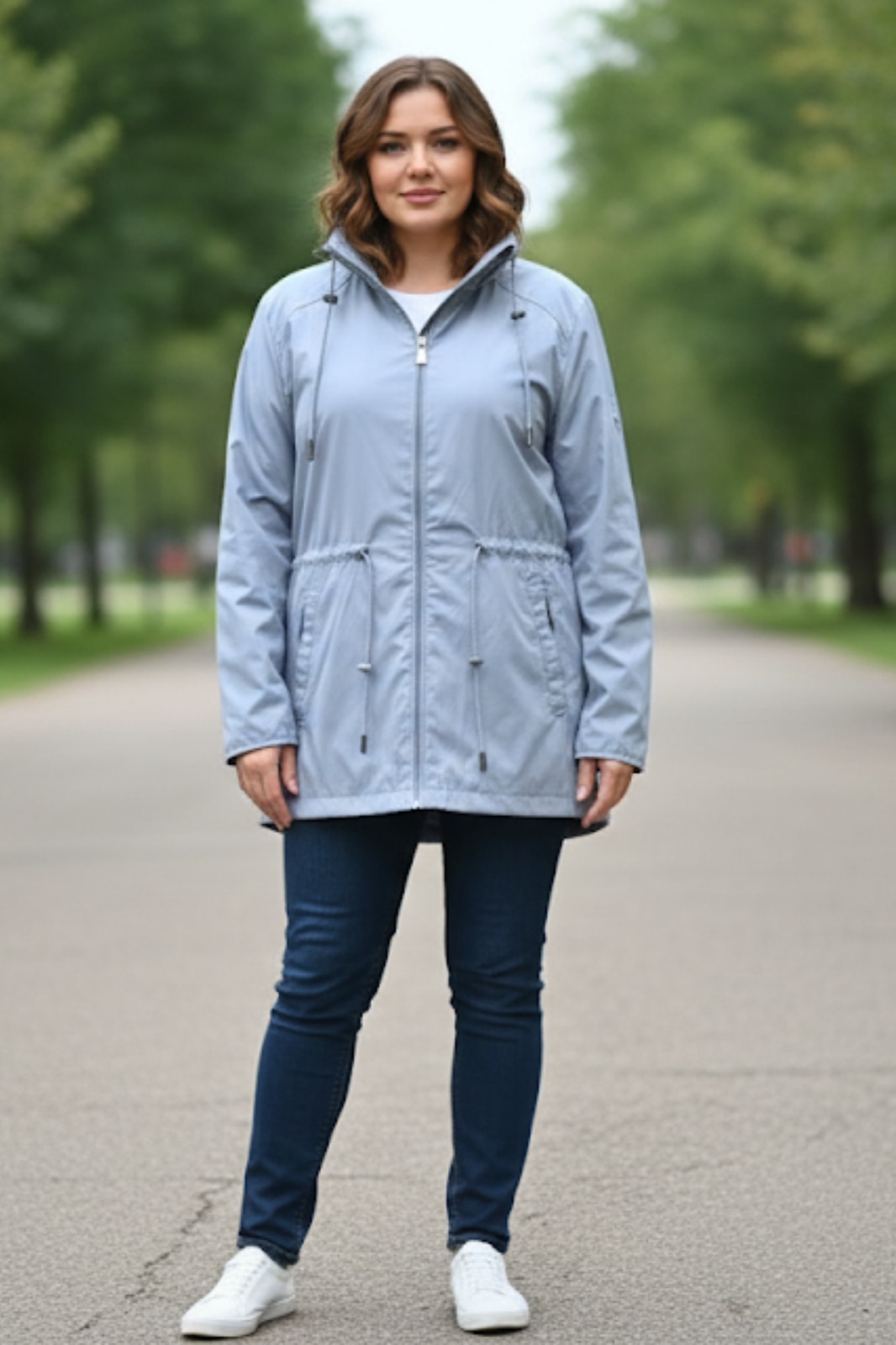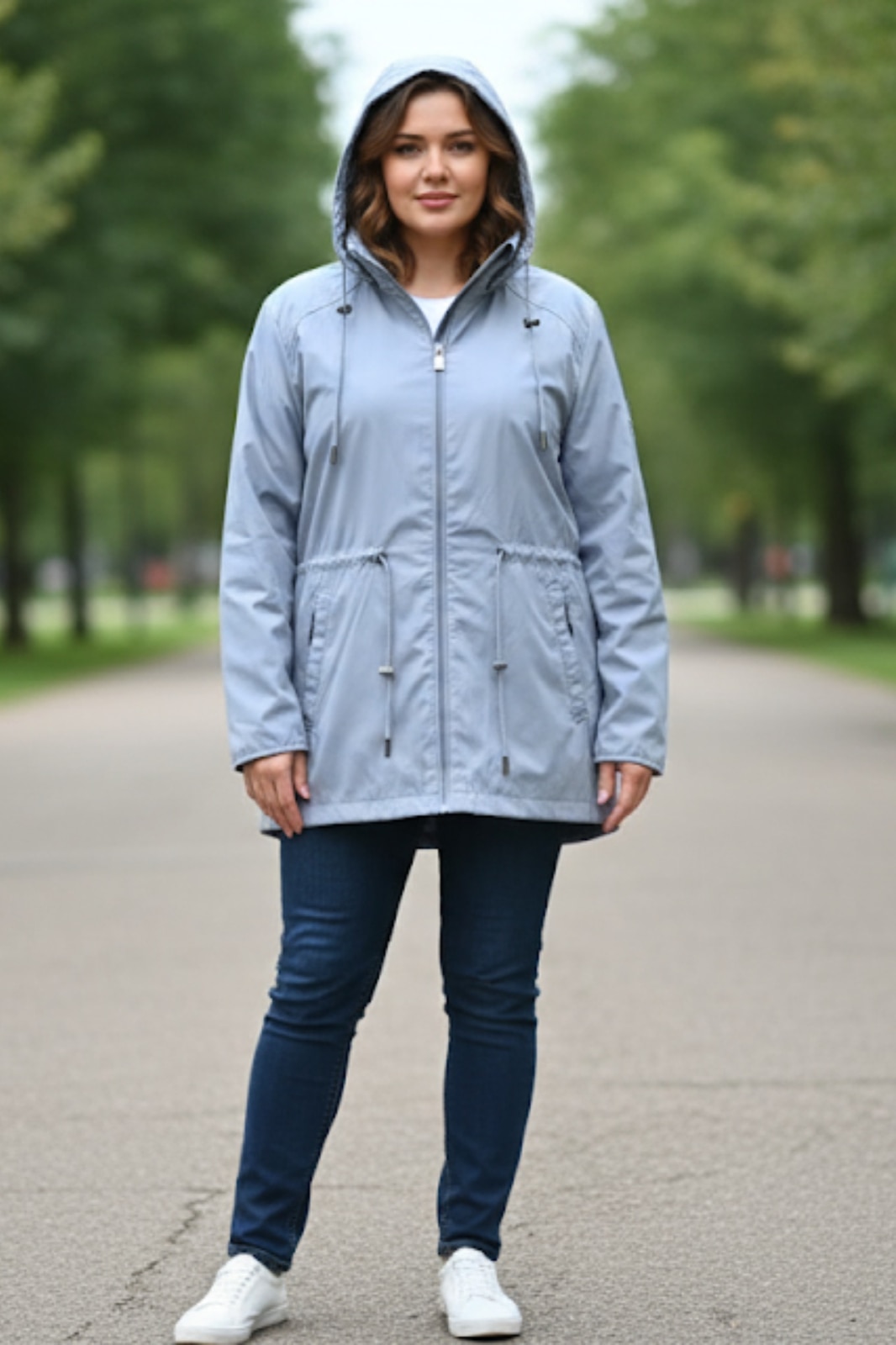 embody - Geaca dama marime mare cu gluga detasabila, buzunare cu fermoar bleu 8024-4 11920, Albastru
