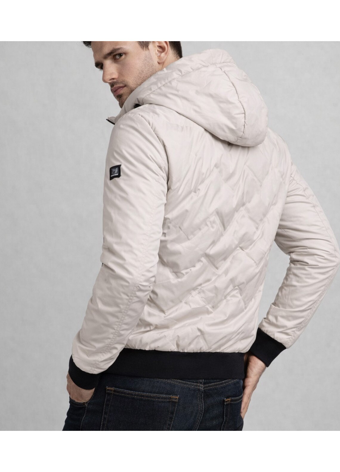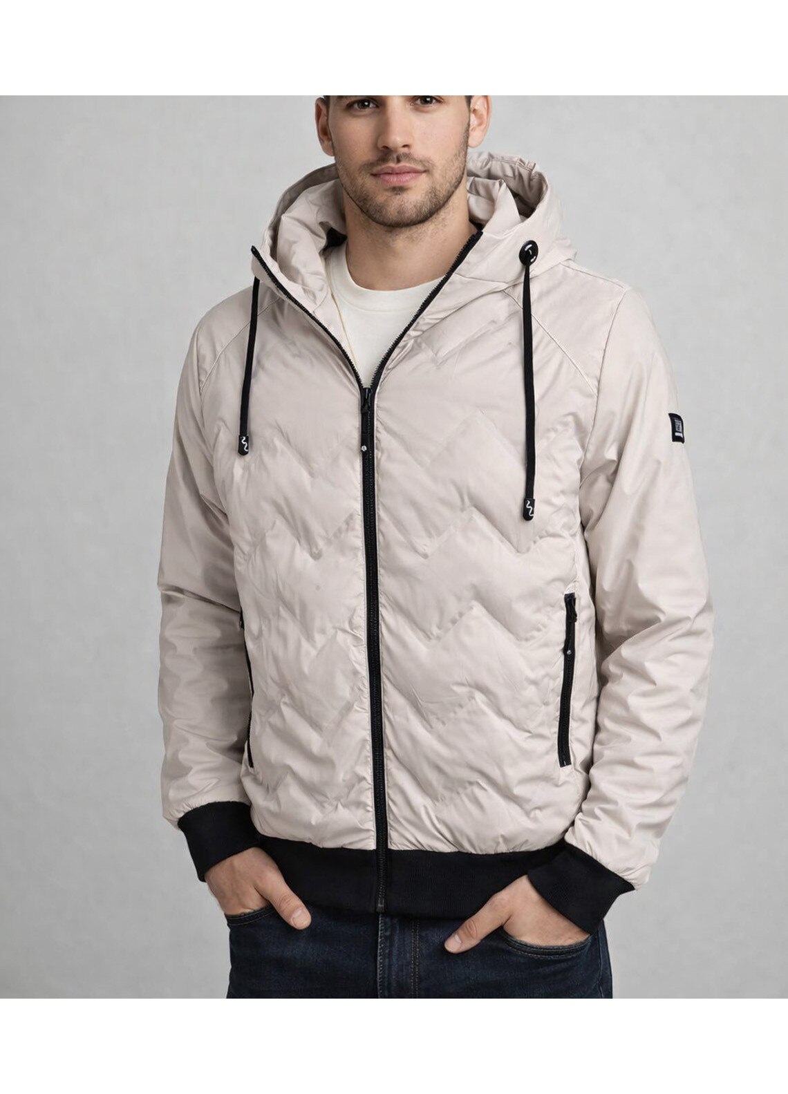 Geacă matlasată glugă fix, Alb