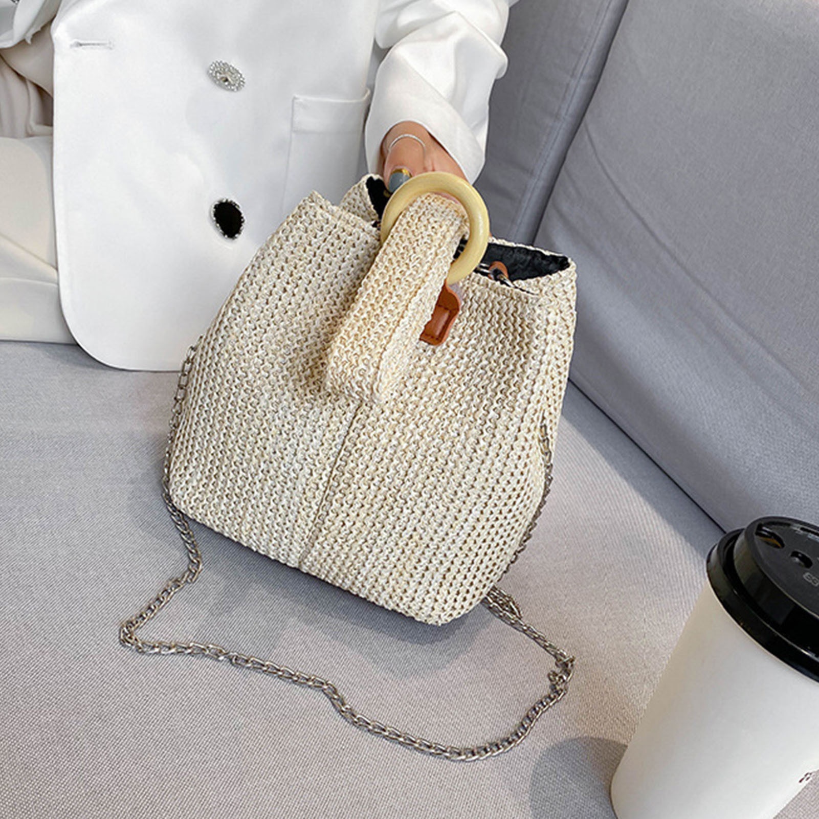 Geanta de plaja din paie, Jormftte, capacitate adecvata, usoara, bej, dimensiune unica