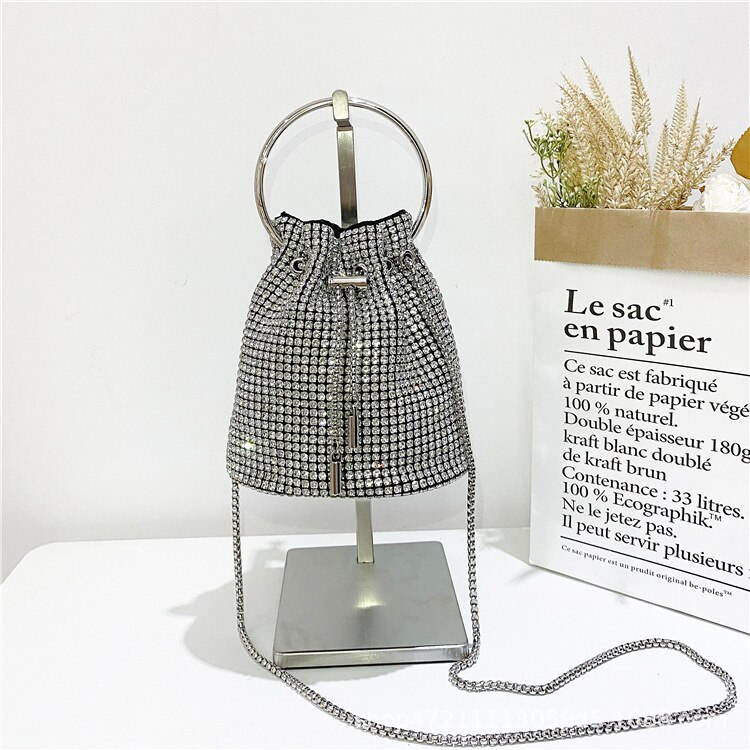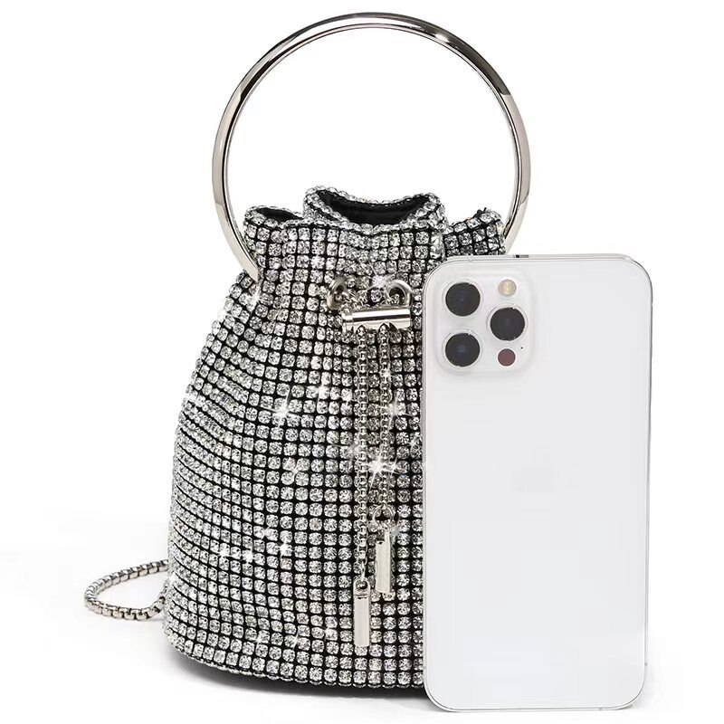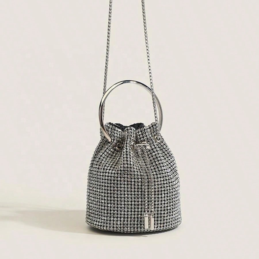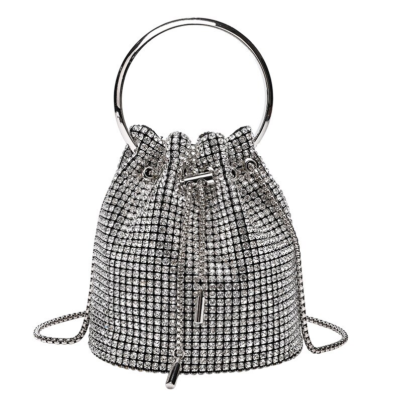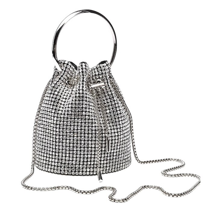 Geanta de seara pentru femei, model Crossbody, argintie, din nylon