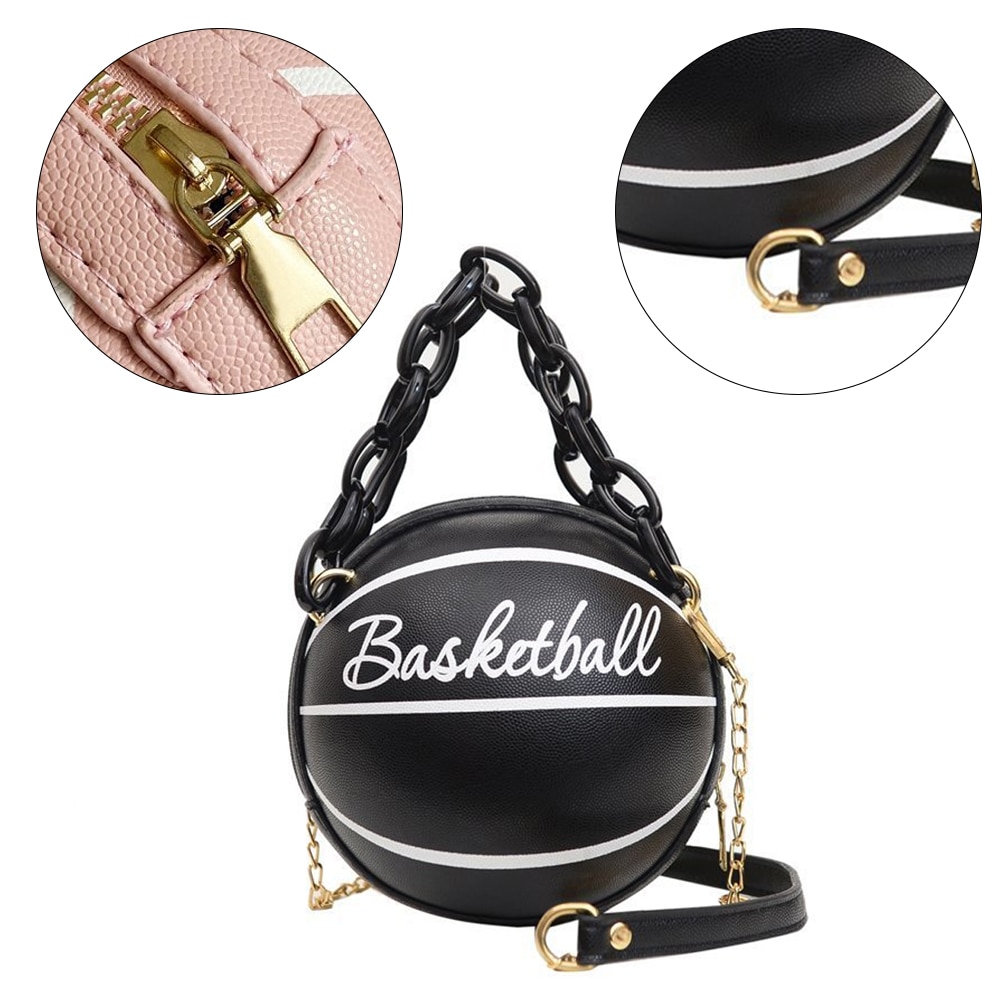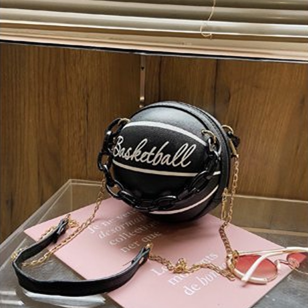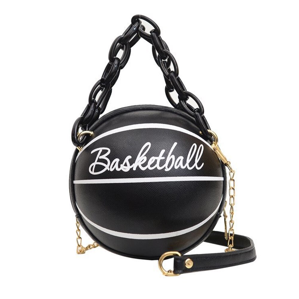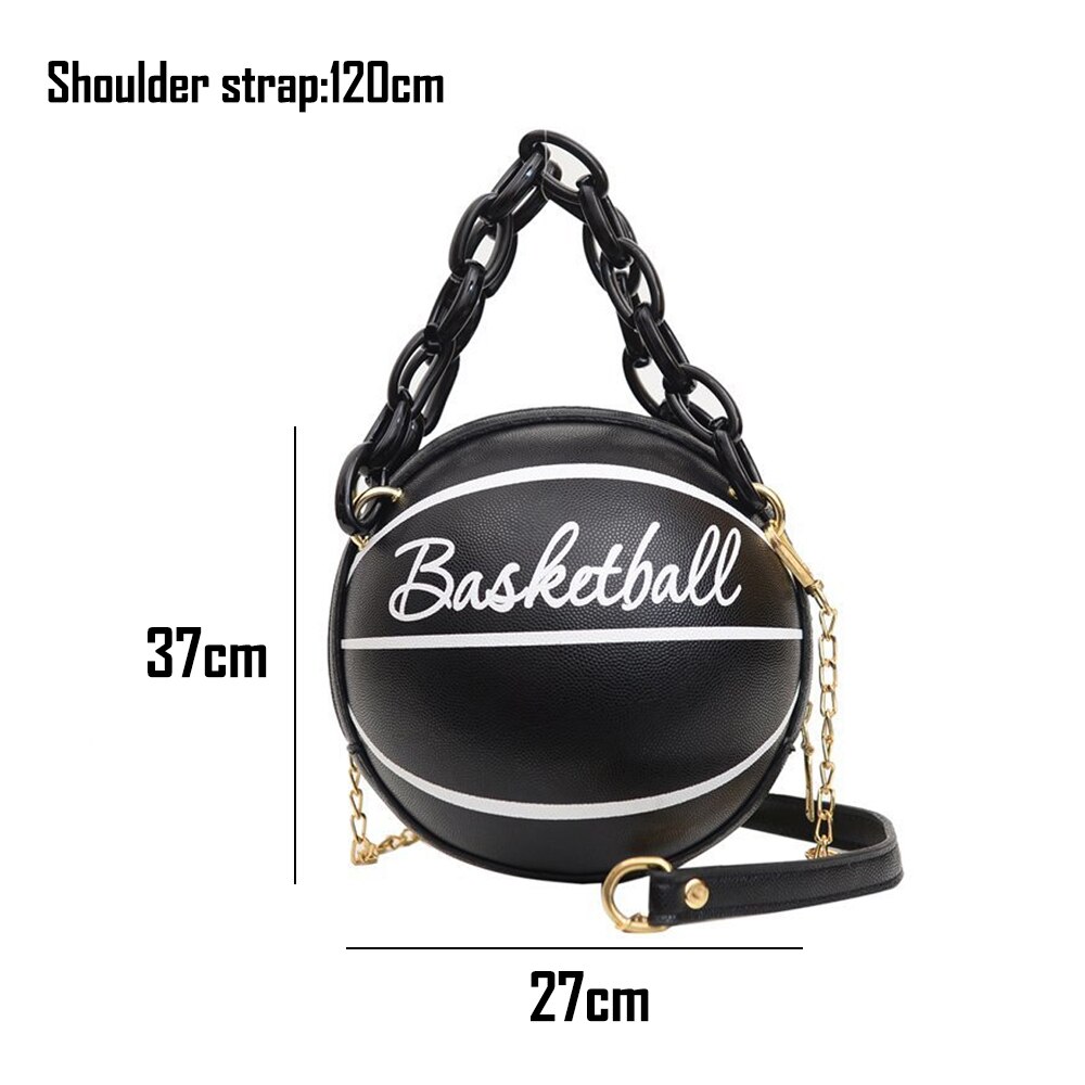 Geanta de umar pentru femei, BGHYHYHI, forma minge de baschet, cu lant, negru, piele ecologica