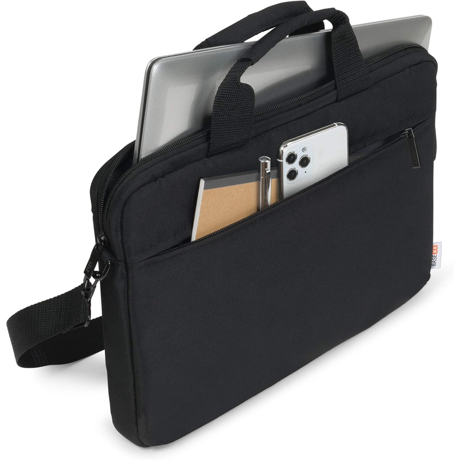 Geanta laptop, 17 inch, realizata 65% din materiale reciclate, material rezistent la apa, usoara, curea de umar captusita, ompatibila Macbook Pro, Air, notebook, ultrabook, Negru