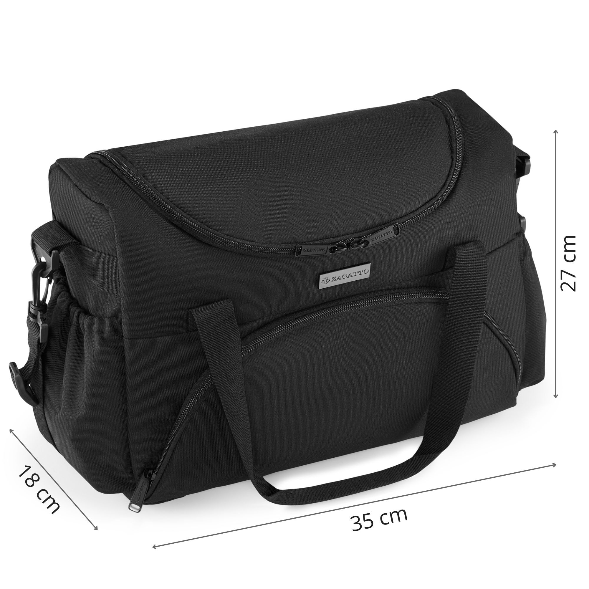 Geanta maternitate, Zagatto, Neagra, Pentru mamici si bebelusi, Geanta carucior dimensiuni 35x27x18 cm, Curea de umar detasabila si reglabila, Impermeabila, Buzunar frontal cu fermoar, Multifunctionala de umar / mana, ZG939
