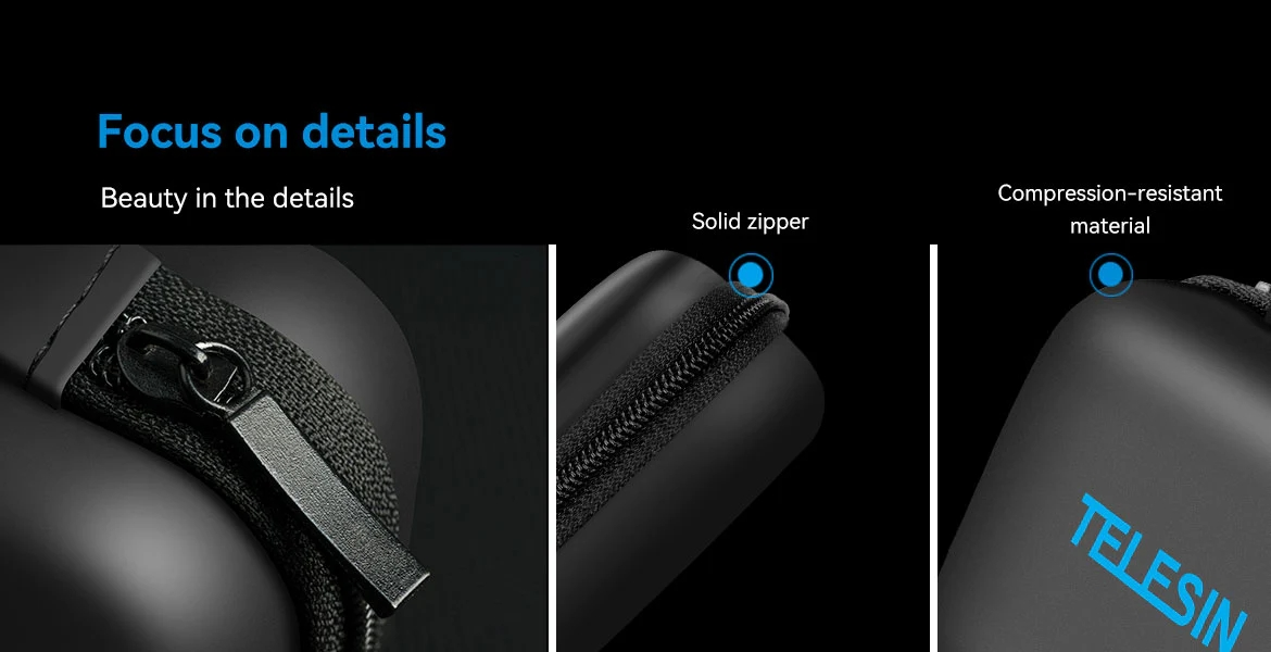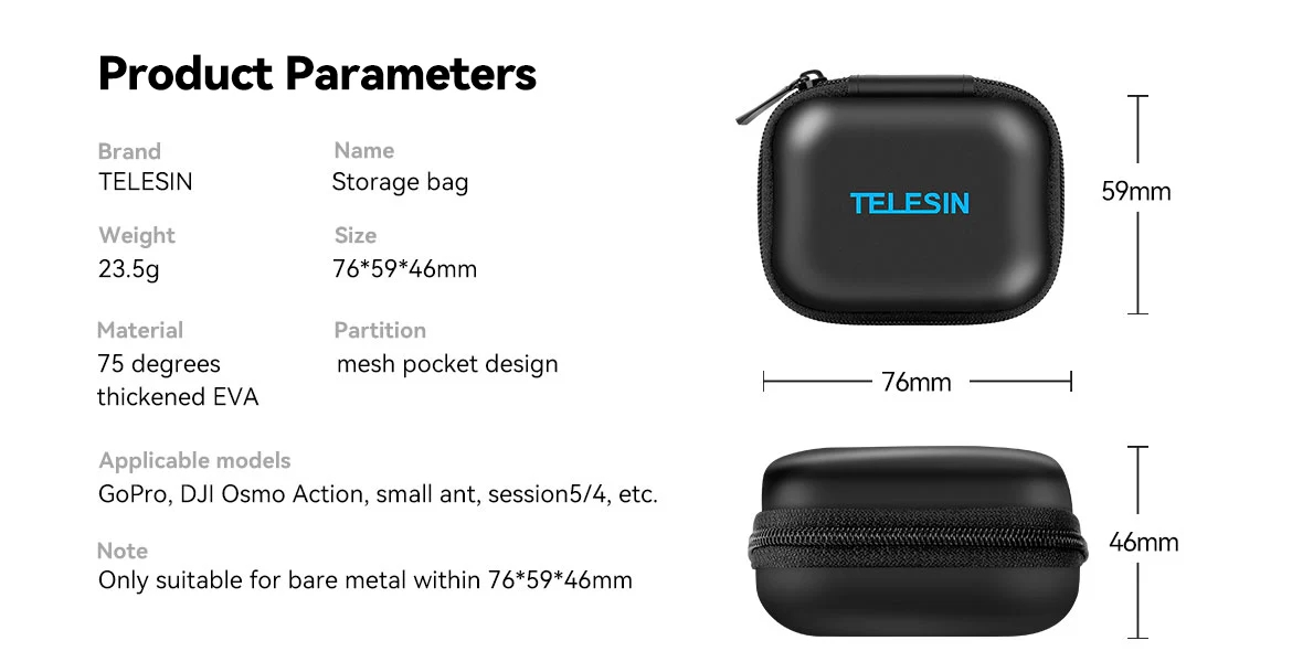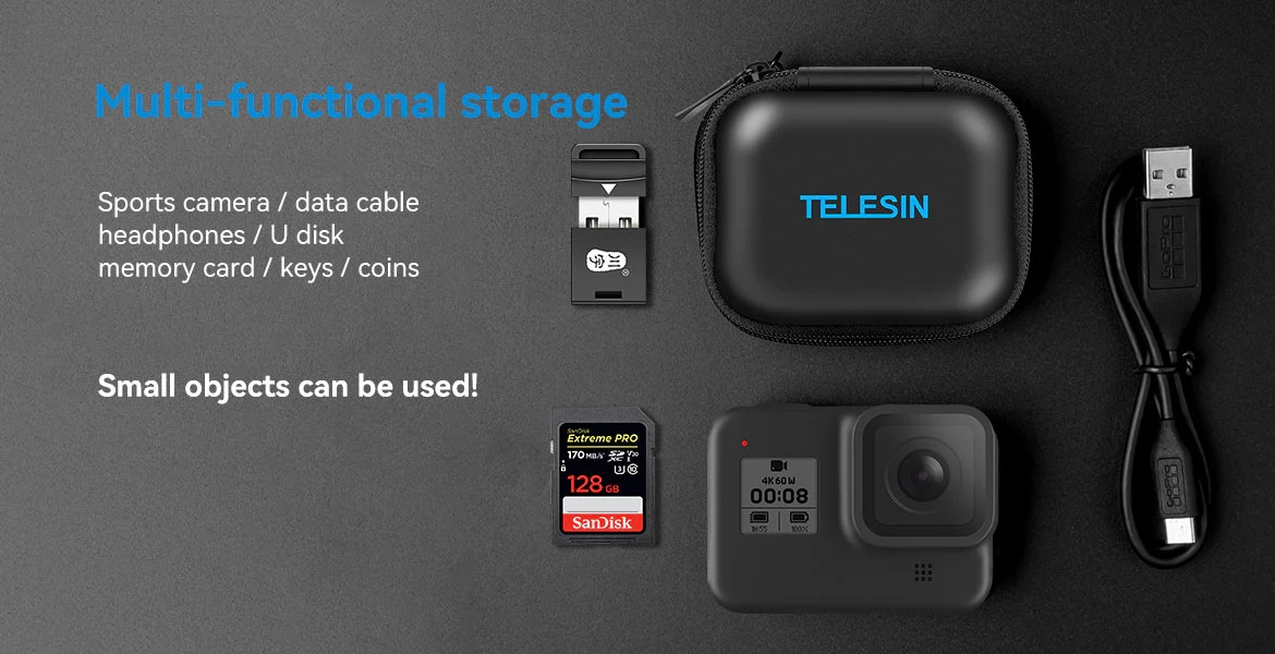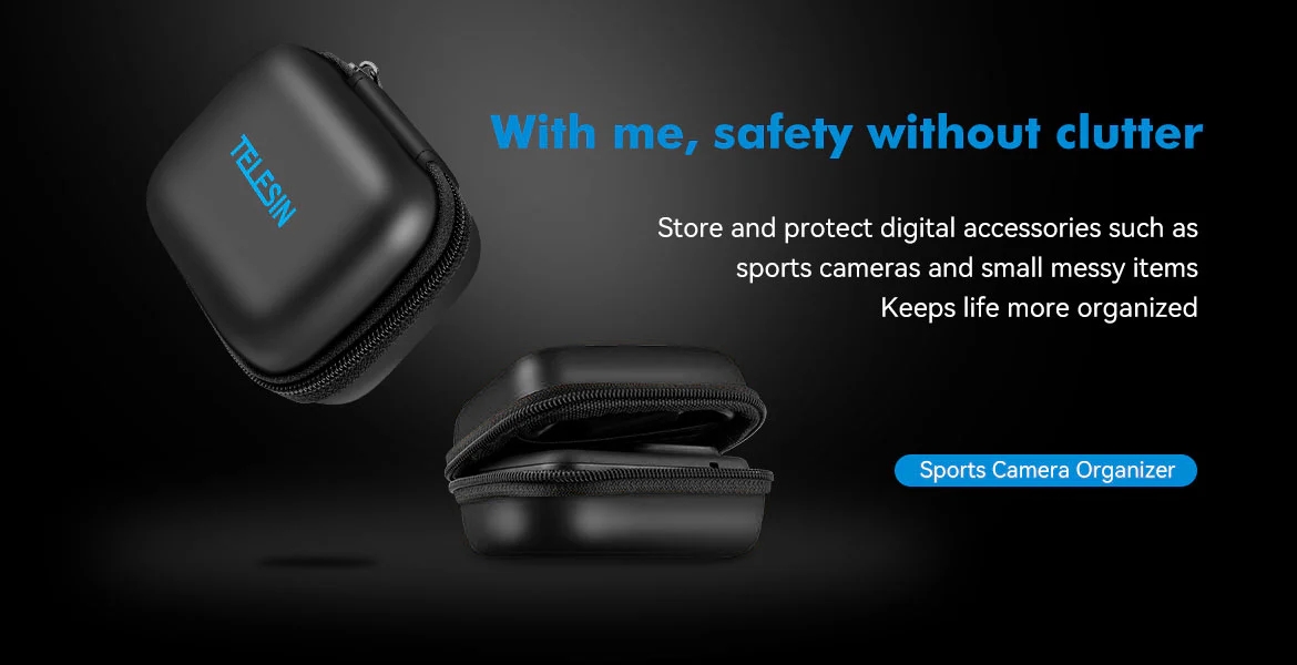 Geanta mini Telesin pentru GoPro Hero 13/12/11/10/9/8/7/6/5, material EVA, rezistenta la socuri si praf, 23.5g, negru